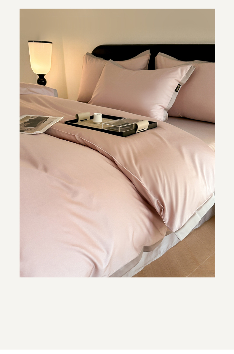 当前位置: 91家纺网 > 商品网购 > 床品套件 > 四件套 > 长绒棉四件套 > 618家纺2023新款180支长绒棉高支贡缎四件套 安迪-蜜果粉椰子灰