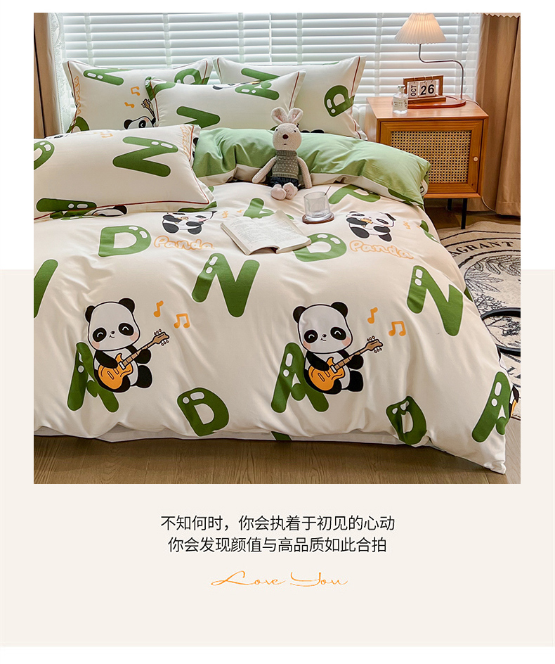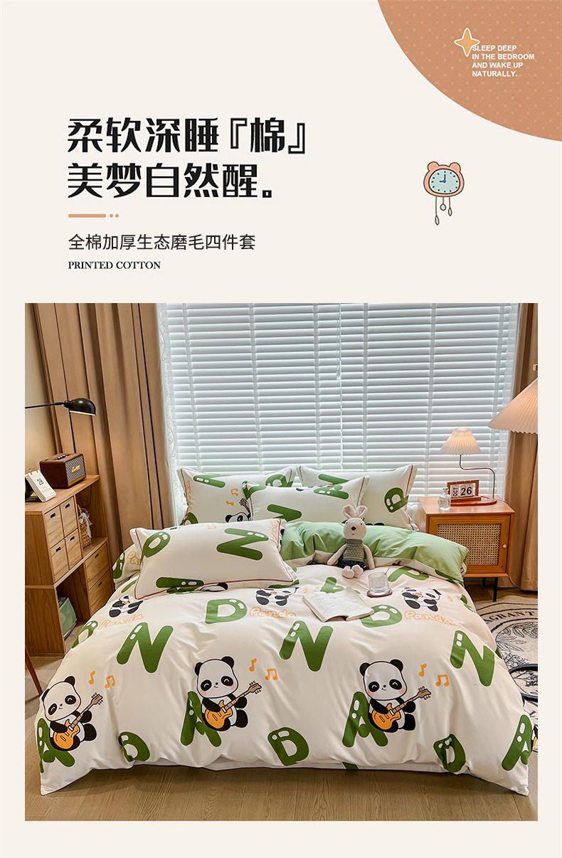 商品名称:芃成家纺 2023新款磨毛四件套 艺术熊猫