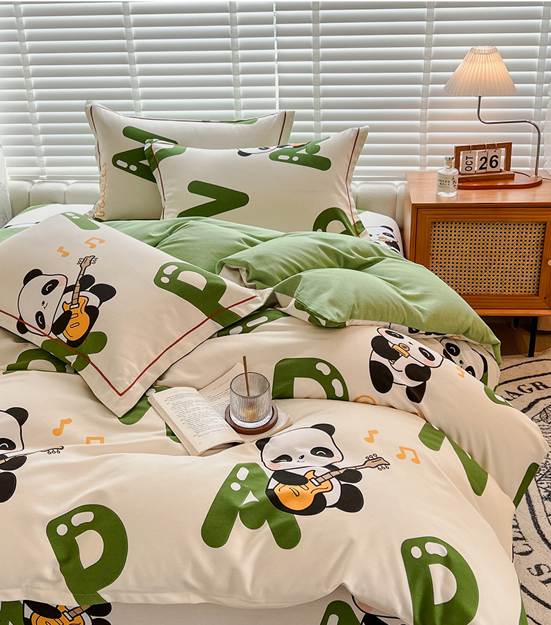 芃成家纺 2023新款磨毛四件套 艺术熊猫