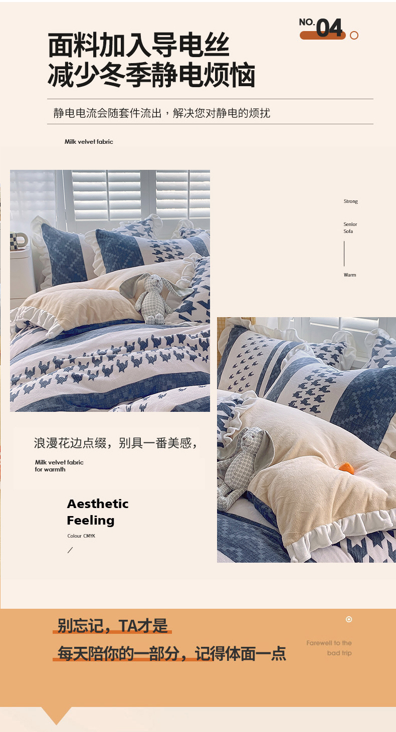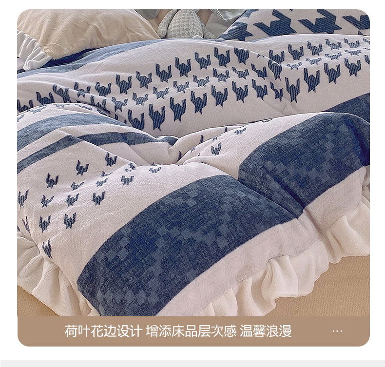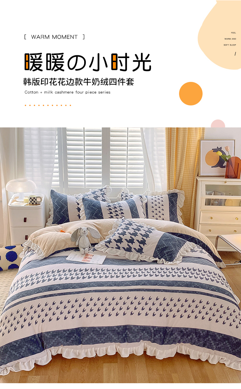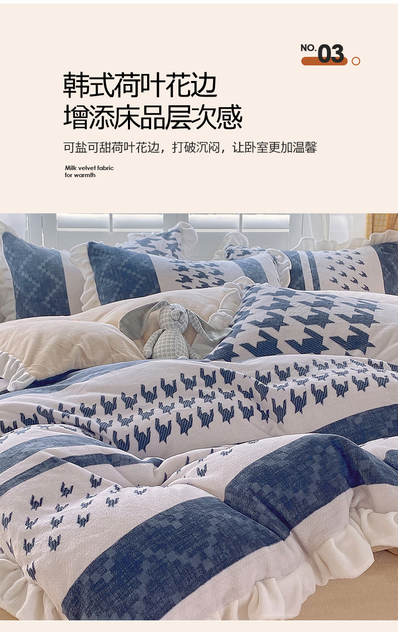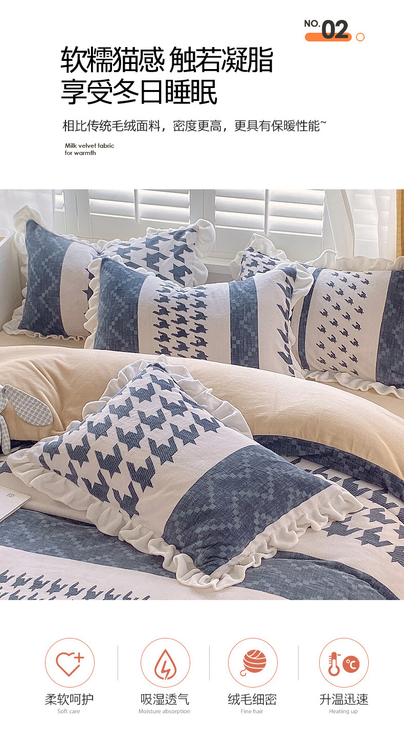 商品名称:宜家坊 2023新款直播韩版印花花边款牛奶绒四件套 千鸟格