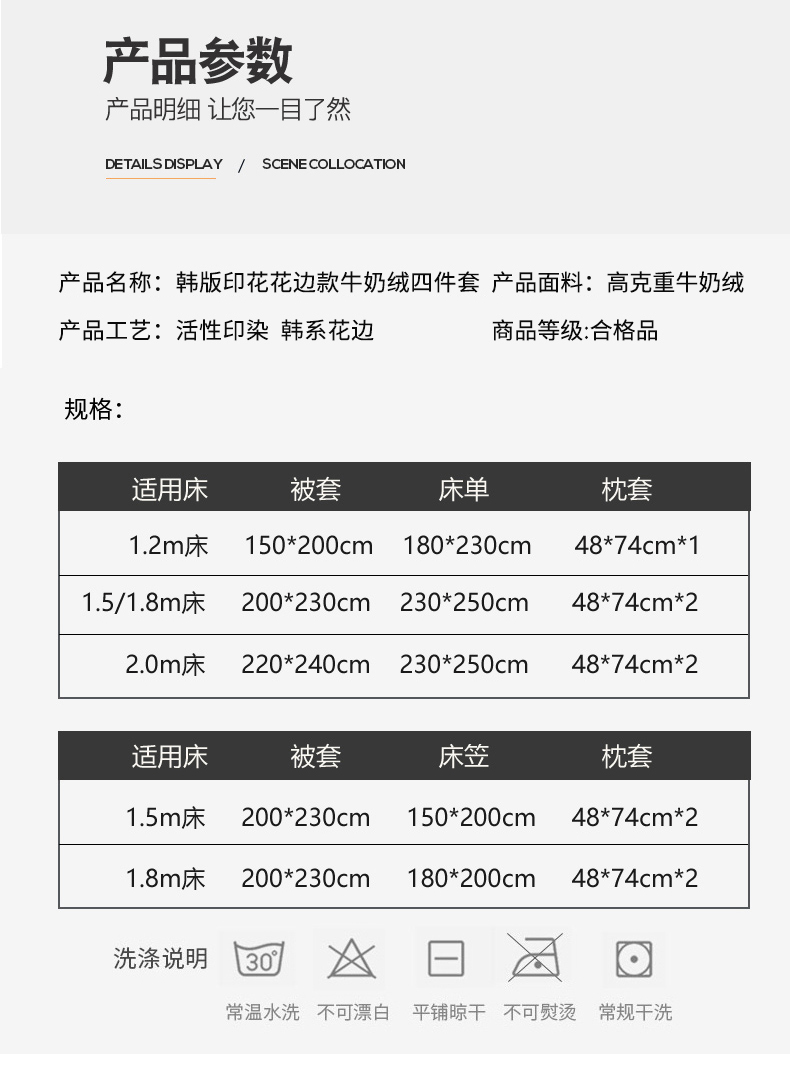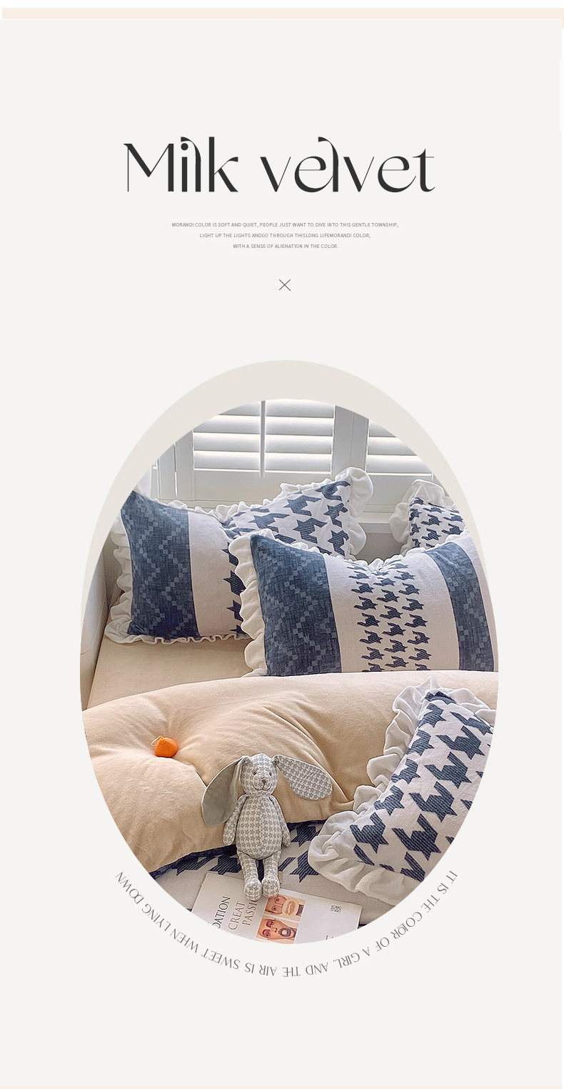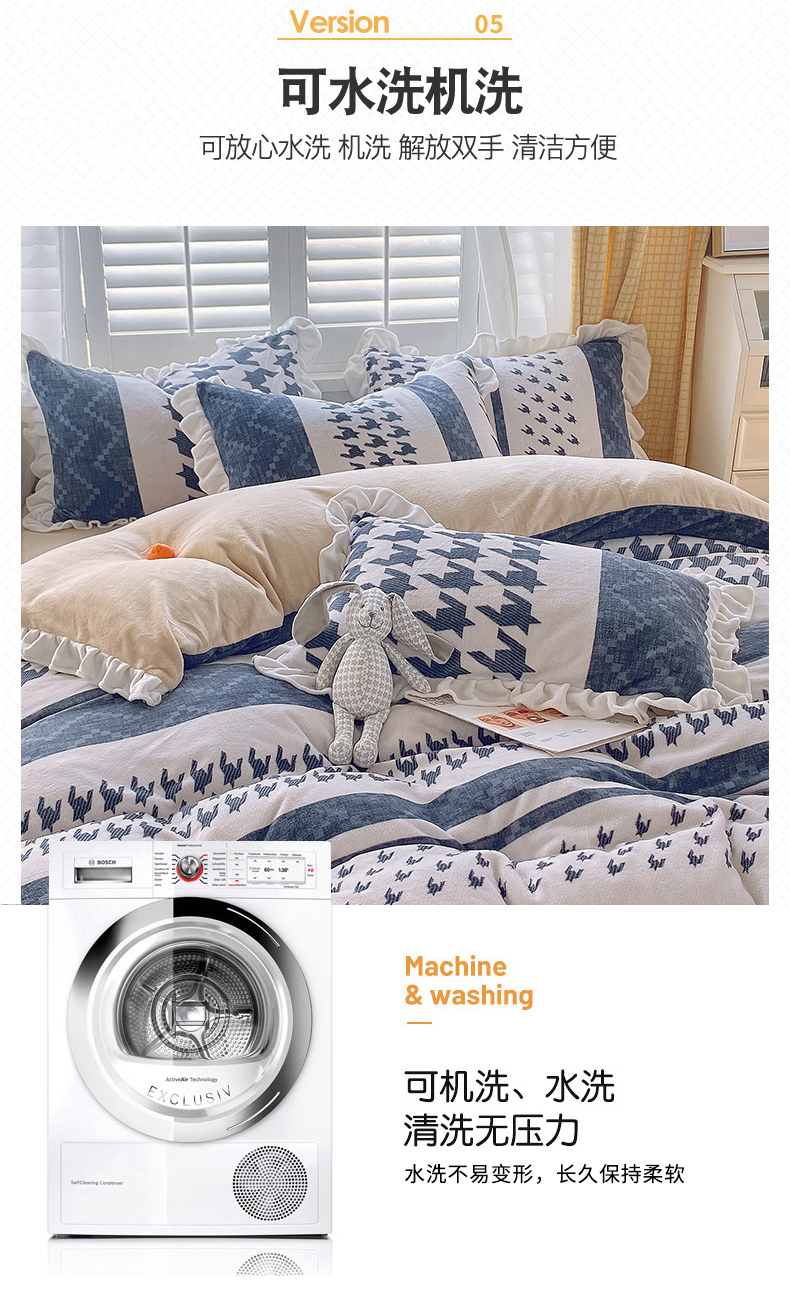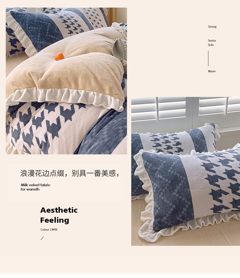商品名称:宜家坊 2023新款直播韩版印花花边款牛奶绒四件套 千鸟格