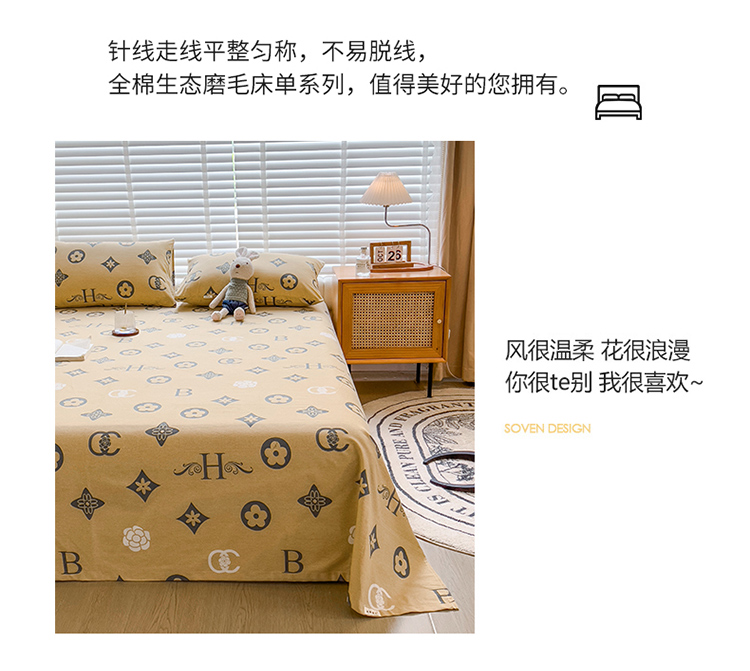 • 91家纺网 家纺一手货源 找家纺 芃成家纺 2023磨毛单床单 复古摩登-黄