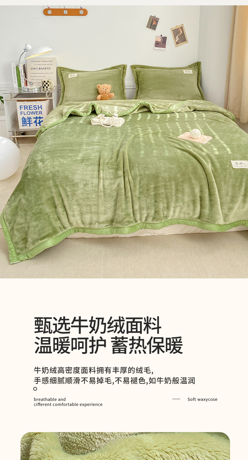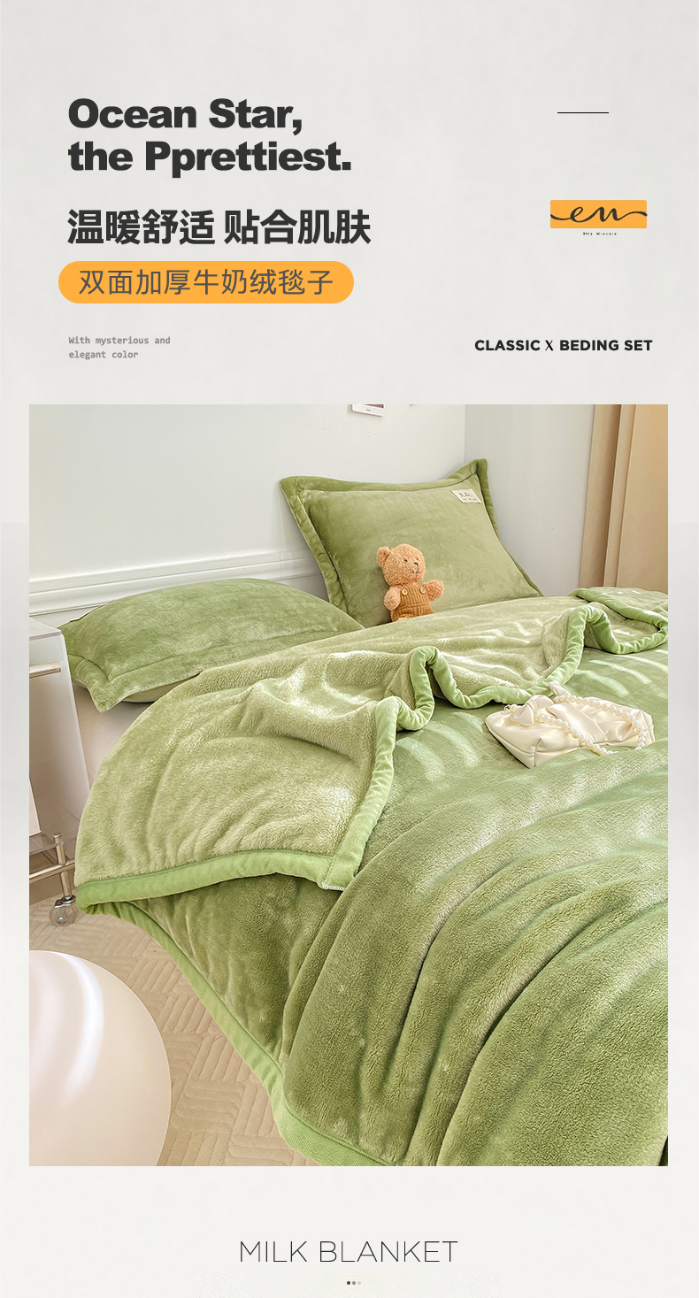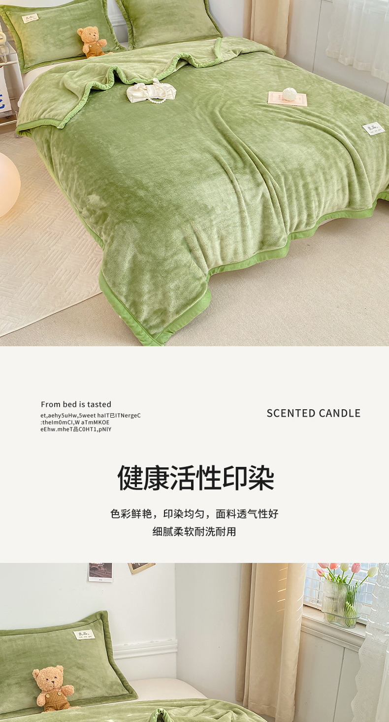 当前位置: 91家纺网 > 商品网购 > 毛毯休闲毯绒毯 > 毛毯 > 慕木家纺 2025新款牛奶绒双面绒纯色印花毛毯盖毯三件套 抹茶绿