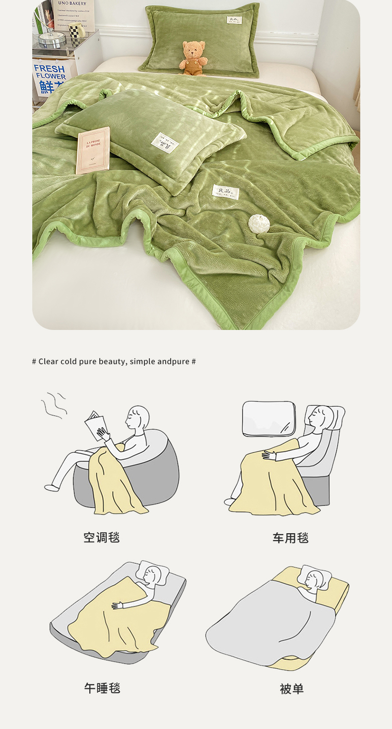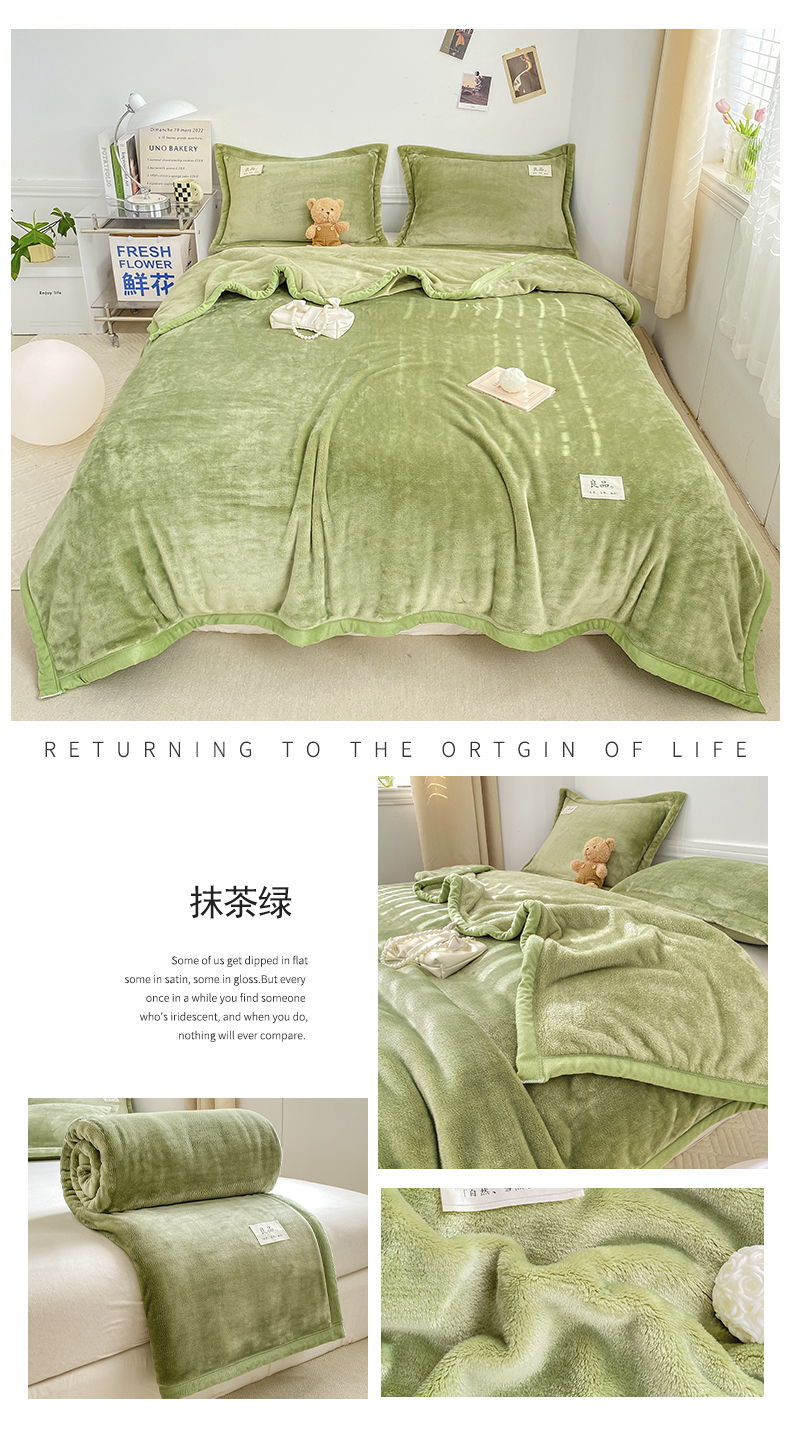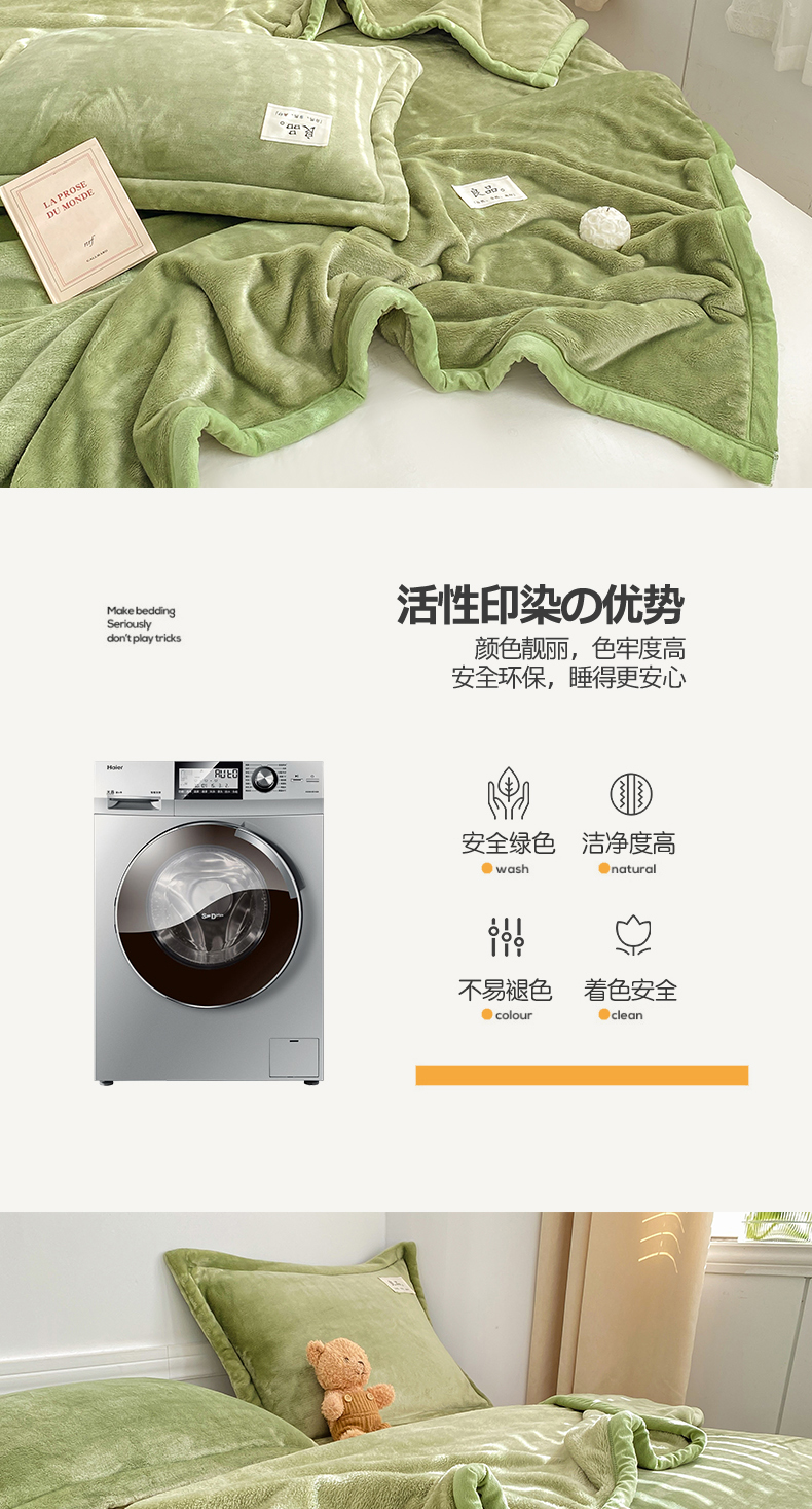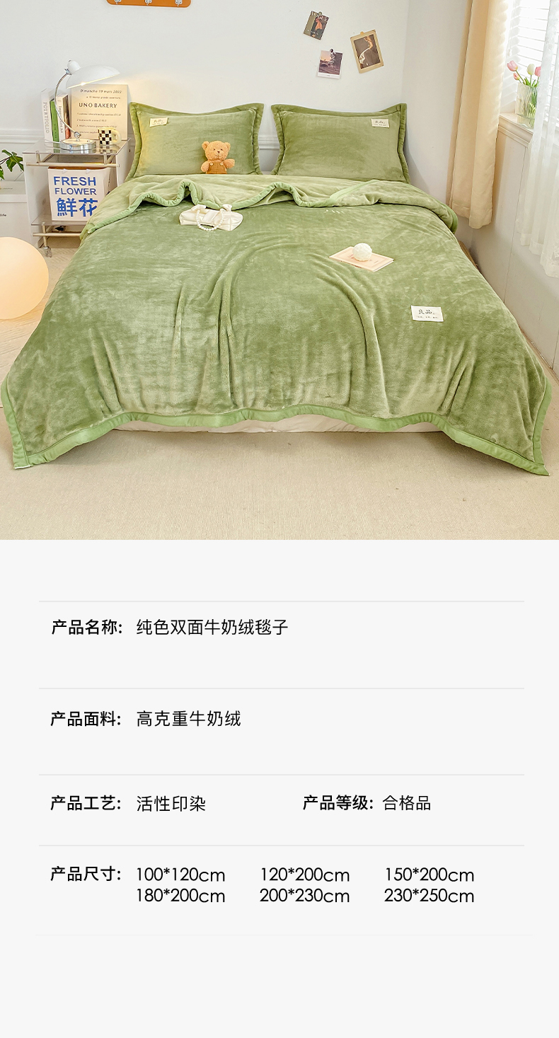 当前位置: 91家纺网 > 商品网购 > 毛毯休闲毯绒毯 > 毛毯 > 慕木家纺 2025新款牛奶绒双面绒纯色印花毛毯盖毯三件套 抹茶绿
