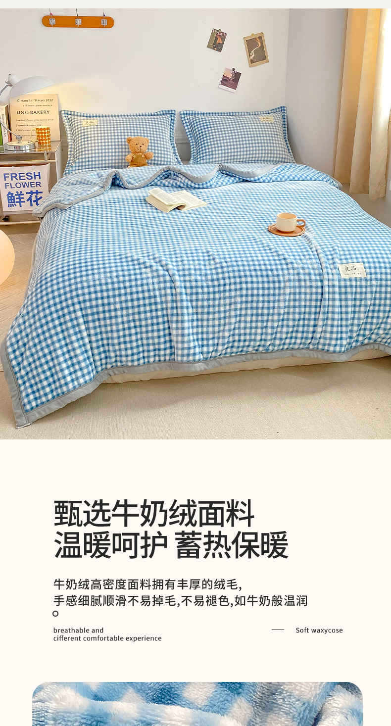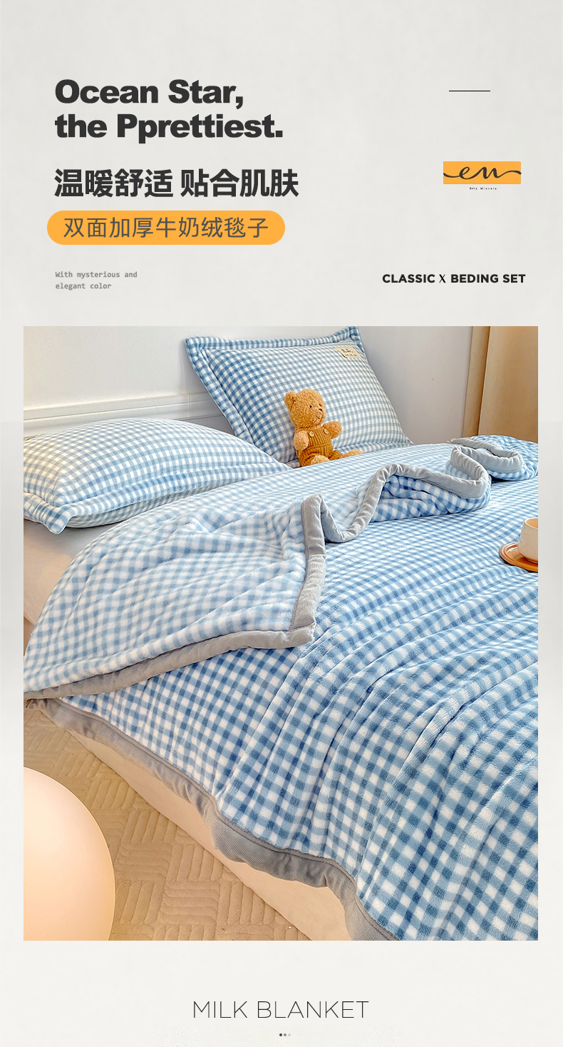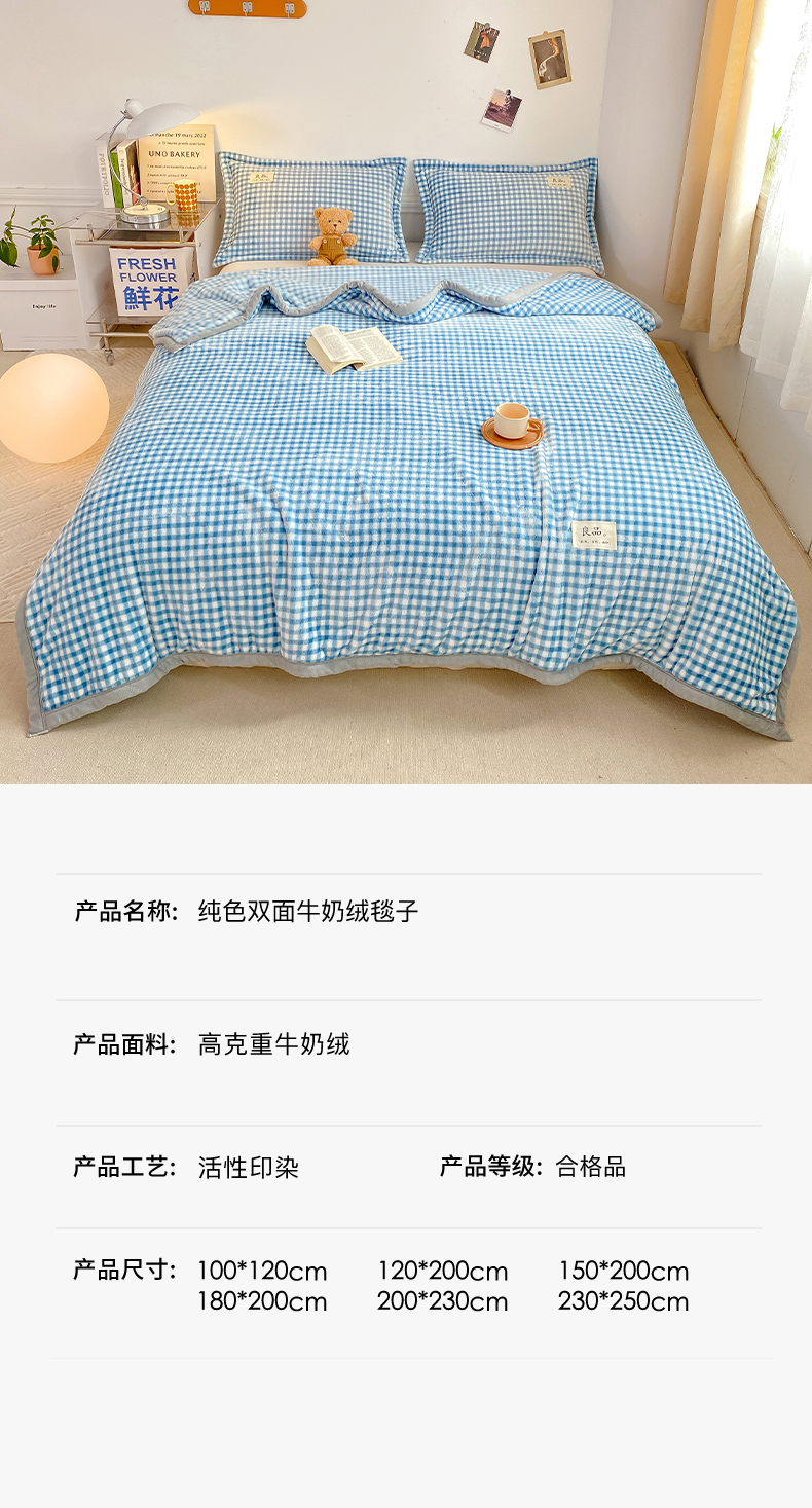 当前位置: 91家纺网 > 商品网购 > 毛毯休闲毯绒毯 > 毛毯 > 慕木家纺 2025新款牛奶绒双面绒纯色印花毛毯盖毯三件套 蓝小格