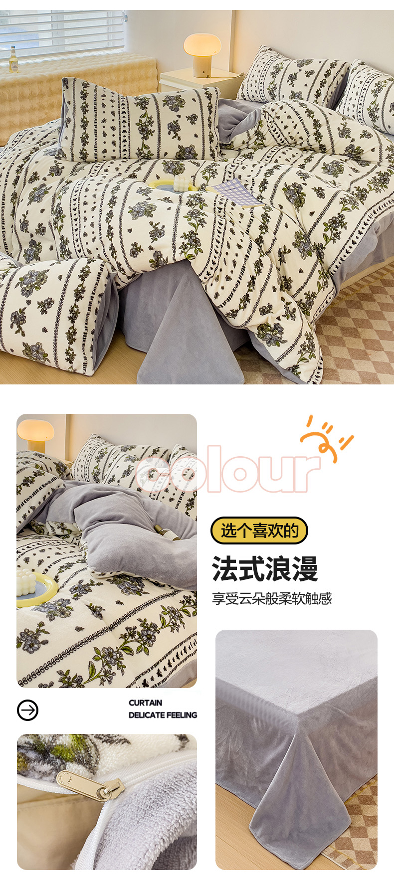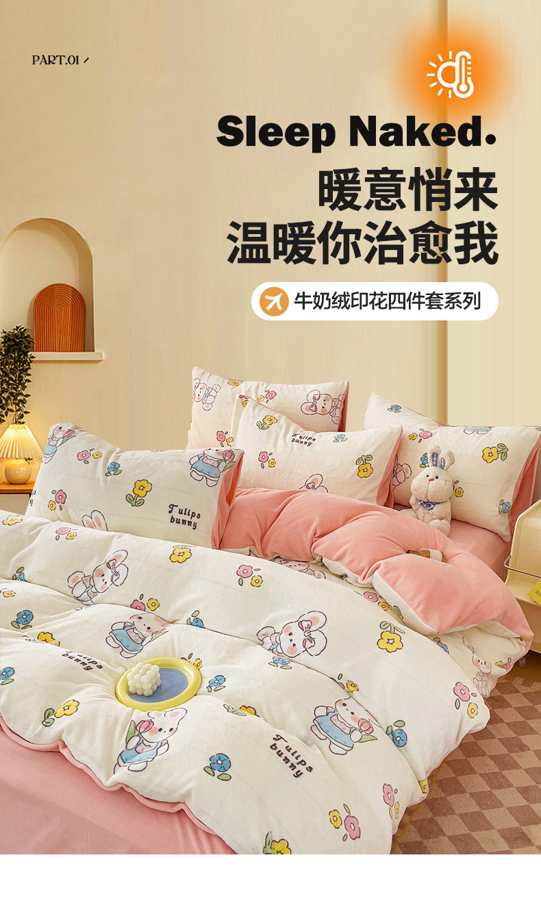 (总)木堇家居 2023新款牛奶绒印花四件套