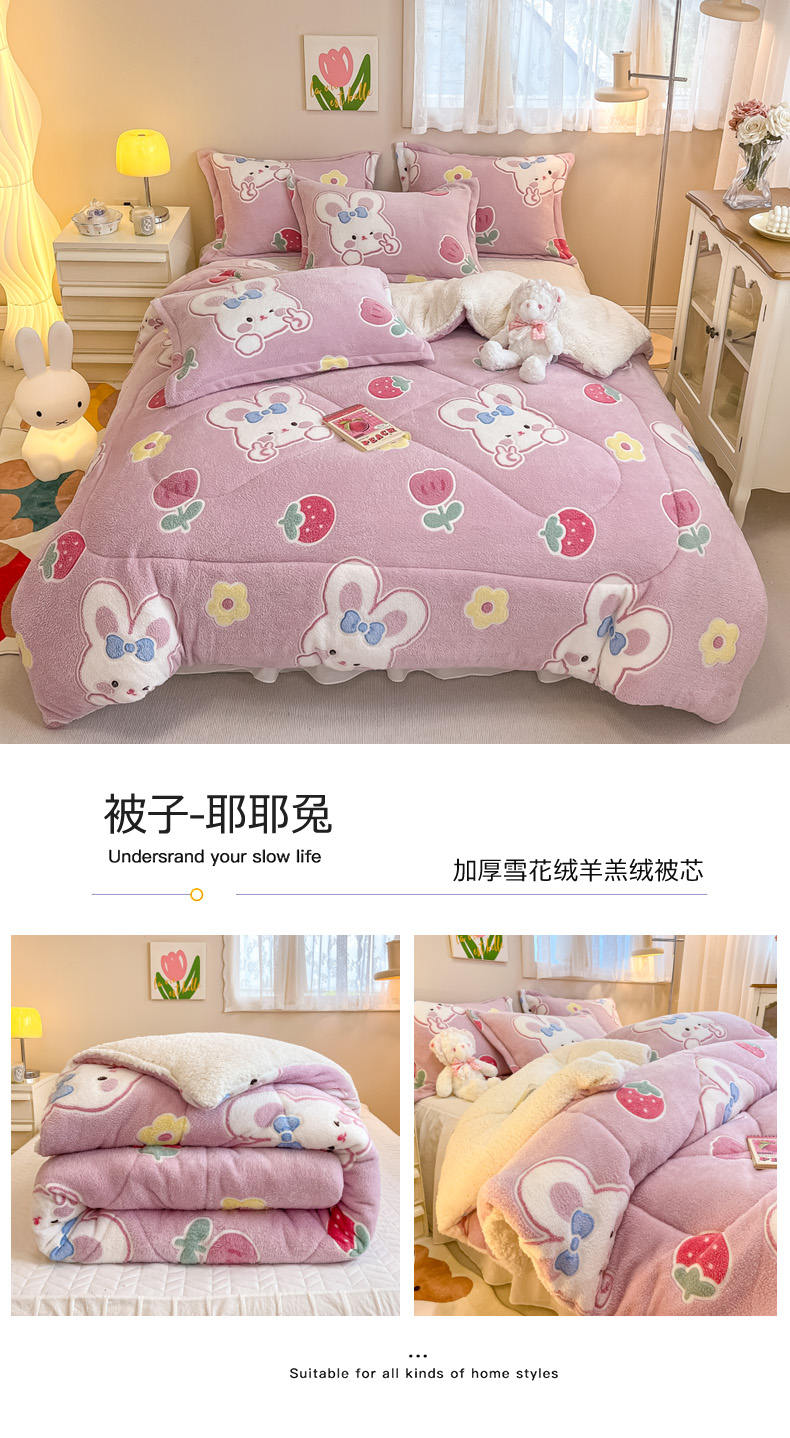花伞 2023新款加厚雪花绒羊羔绒秋冬被保暖被芯 被子-耶耶兔
