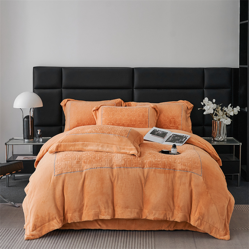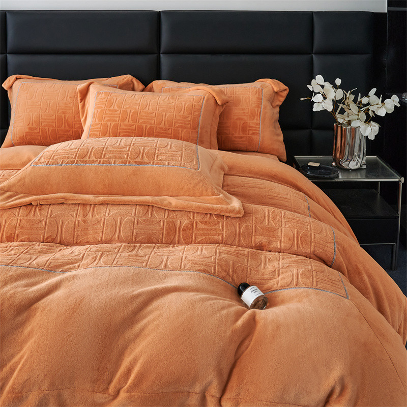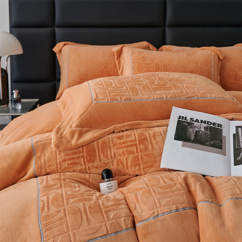 商品名称:时亿 2023新款250g牛奶绒四件套凹凸有致 香蜜橙