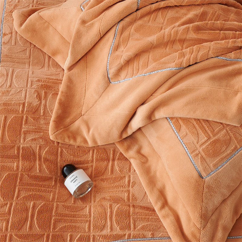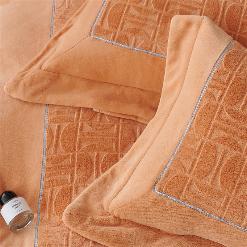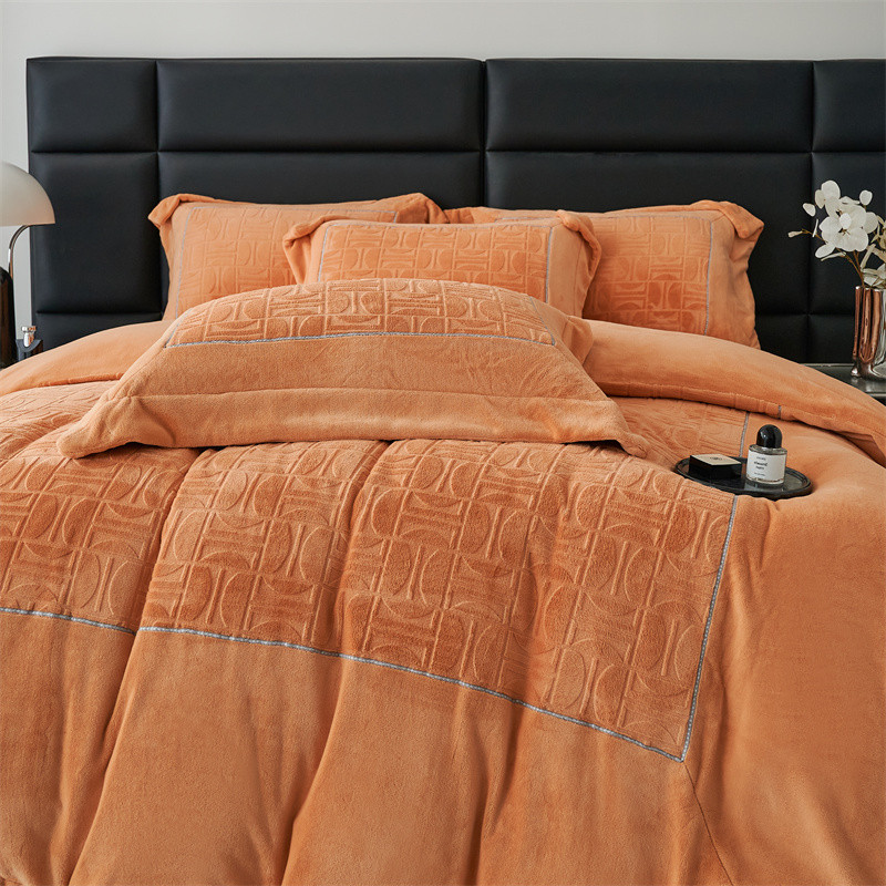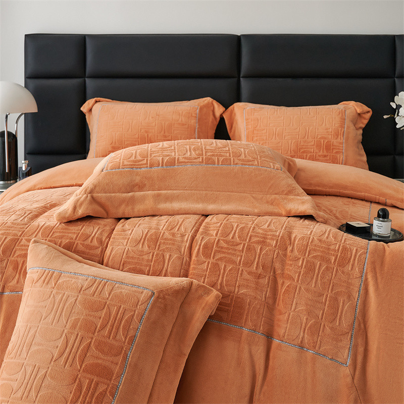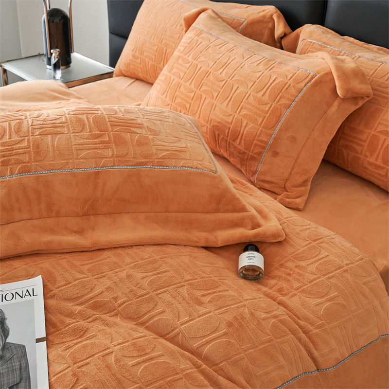 时亿 2023新款250g牛奶绒四件套凹凸有致 香蜜橙