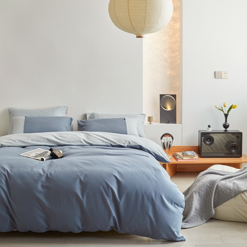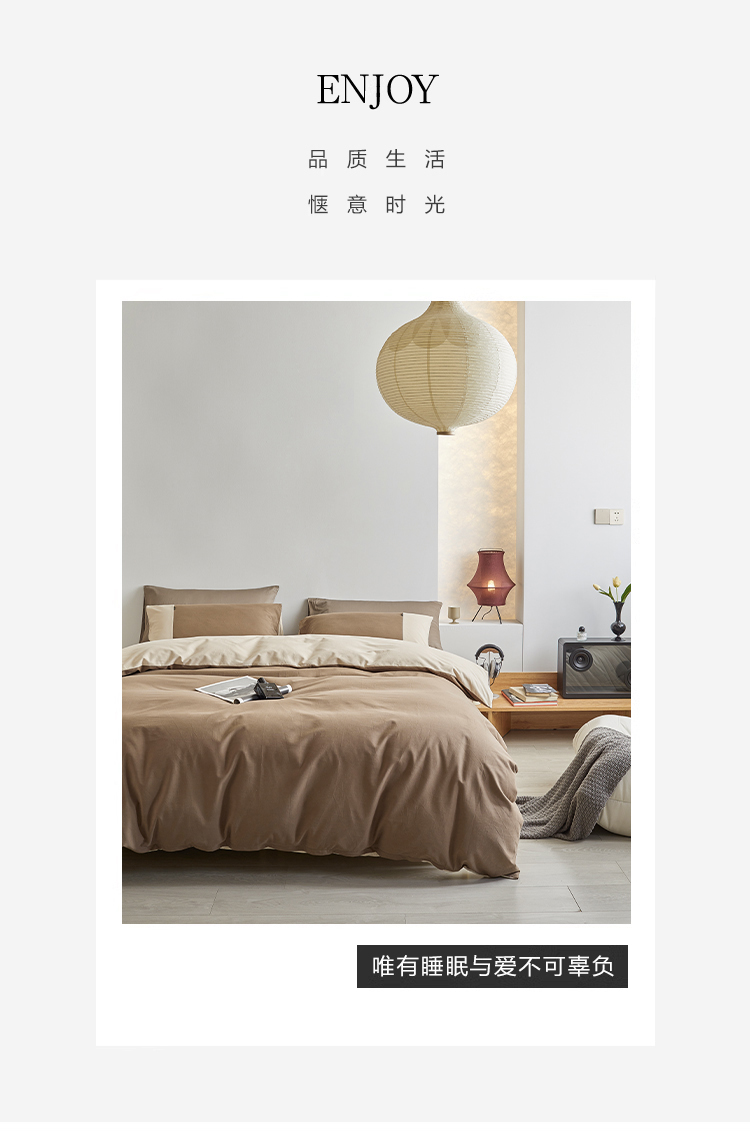 总梦享生活 2022新款100支水洗棉双拼全棉四件套纯棉套件,奥丁黄双拼,冰月蓝双拼,淡蓝双拼,牛油果双拼,深咖双拼,松蓝双拼,海蓝+咖