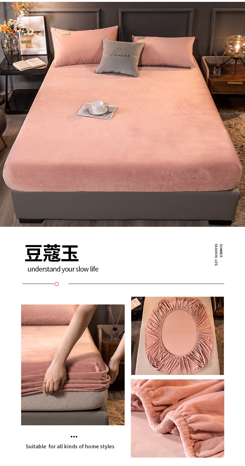 商品名称:全季家居 2023新款高克重水晶绒床笠 豆蔻玉