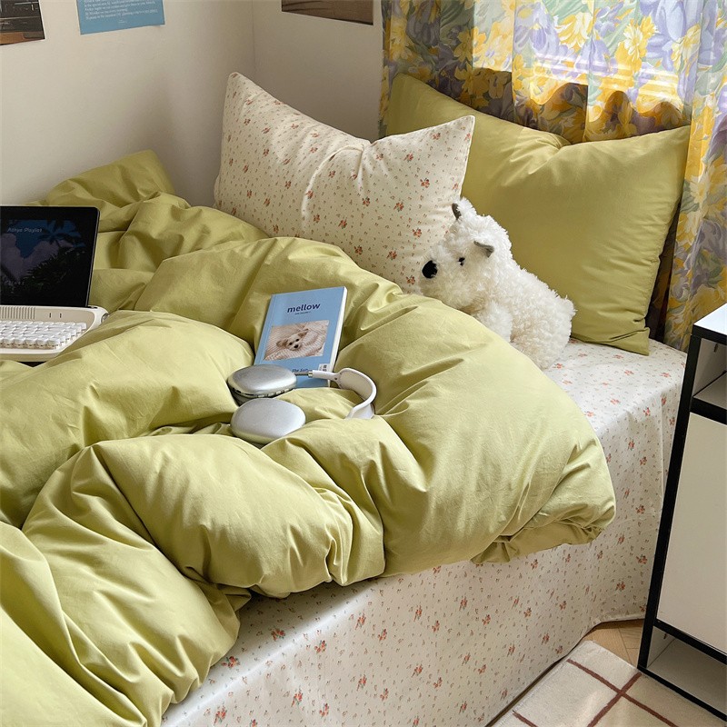 桃喜 2024新款韩系ins博主风纯色碎花混搭40s水洗棉 绿茵