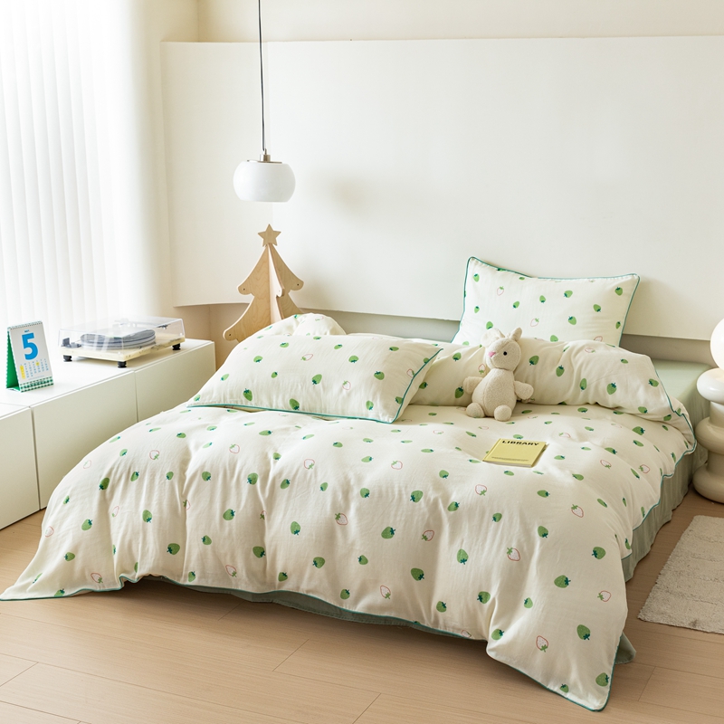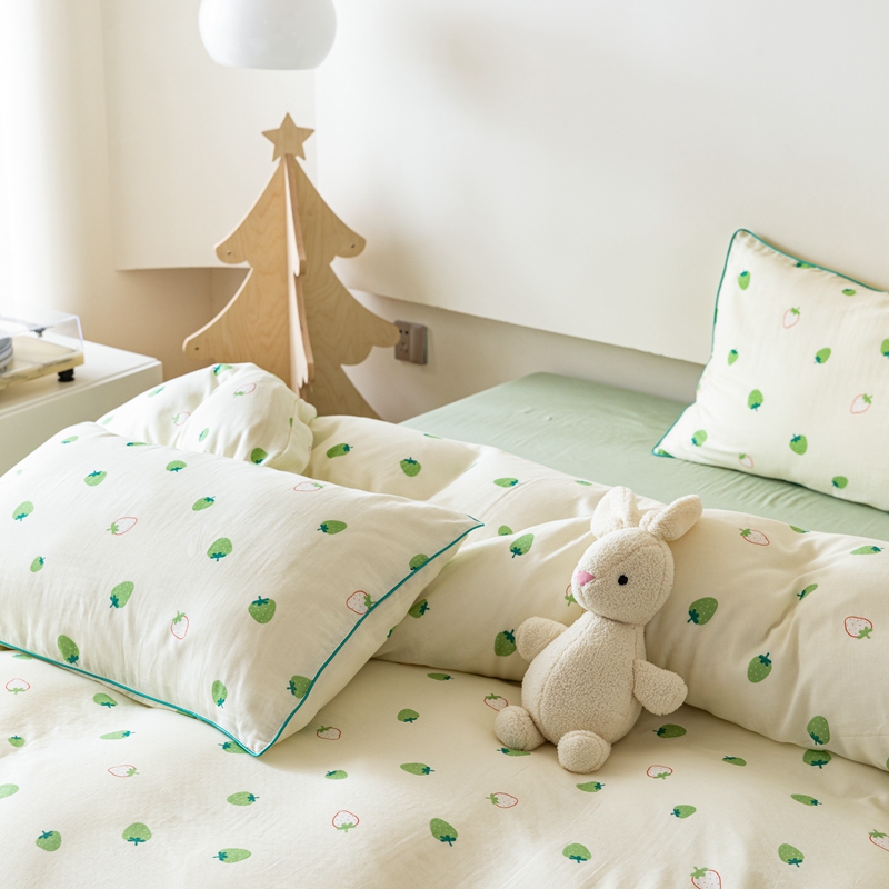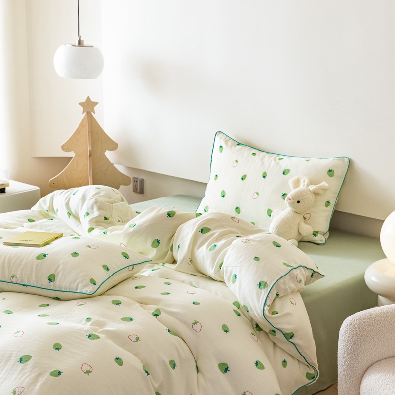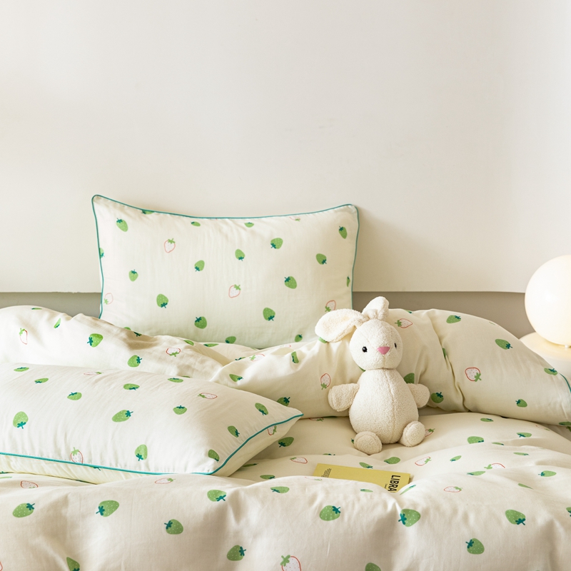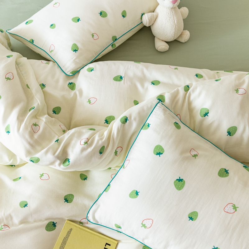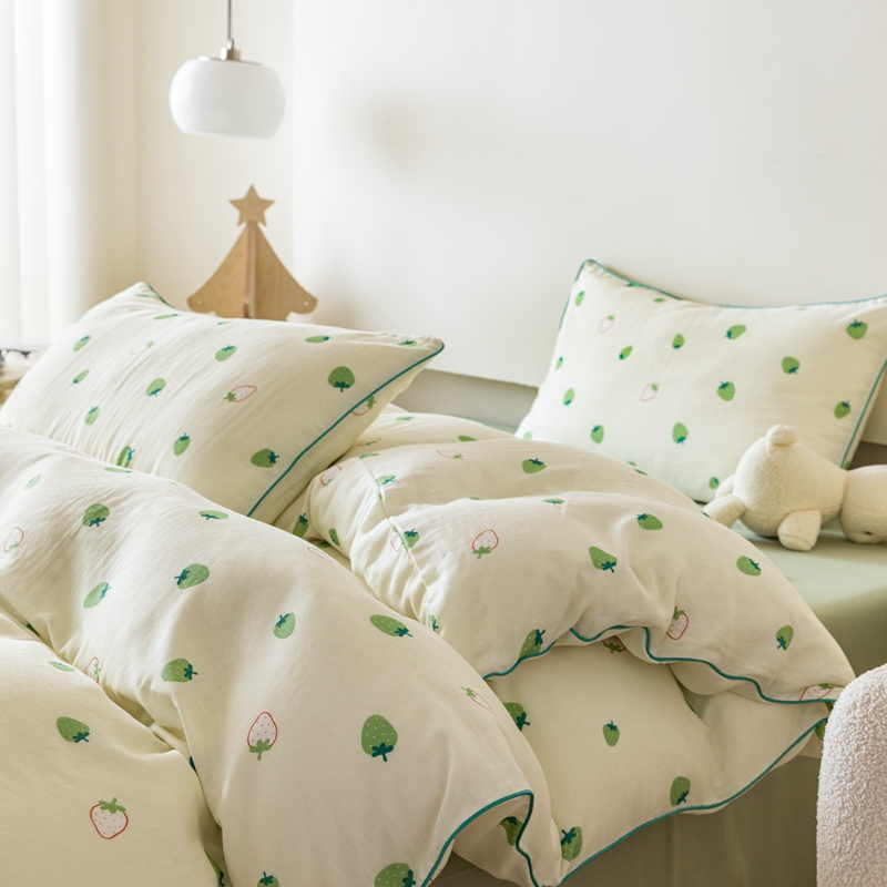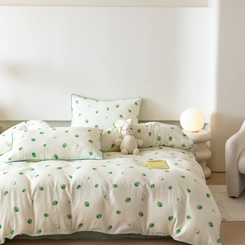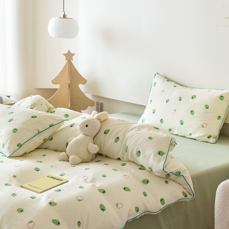 商品名称:本希 2023新款秋冬全棉a类双层纱四件套-小清新 奶油草莓