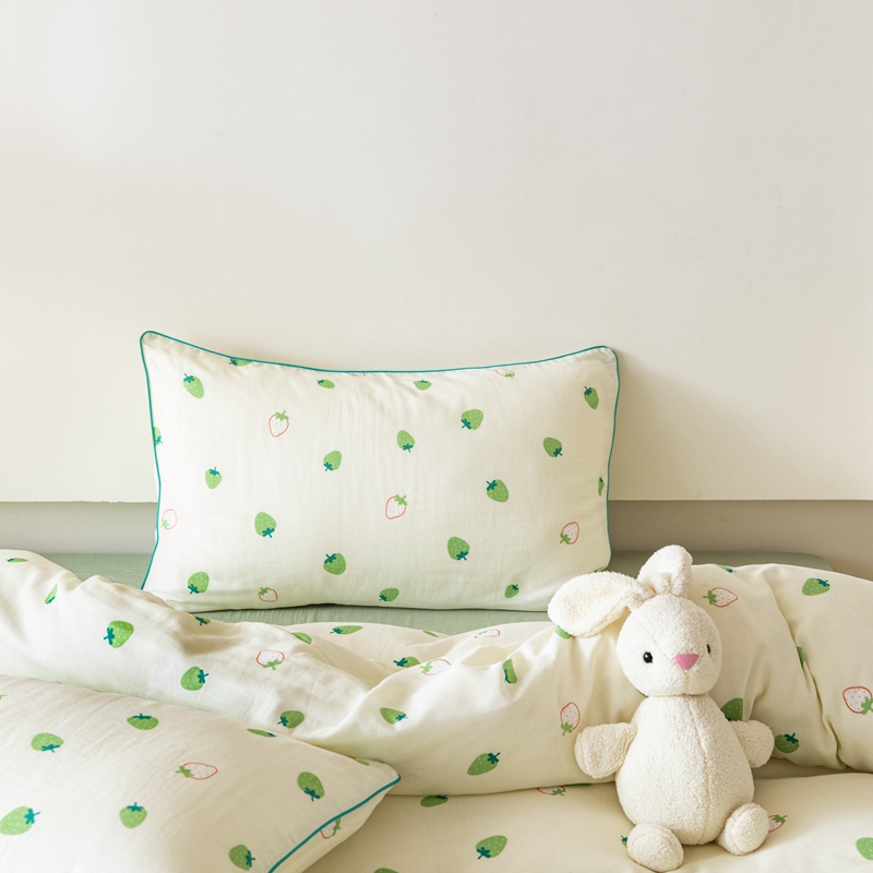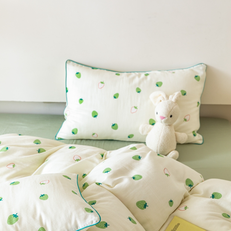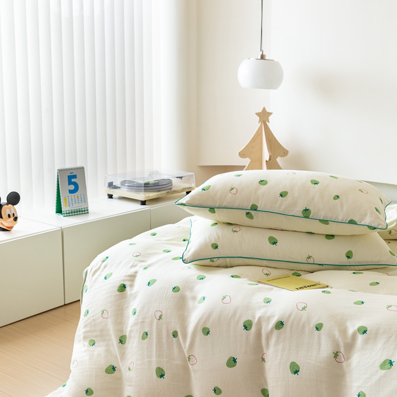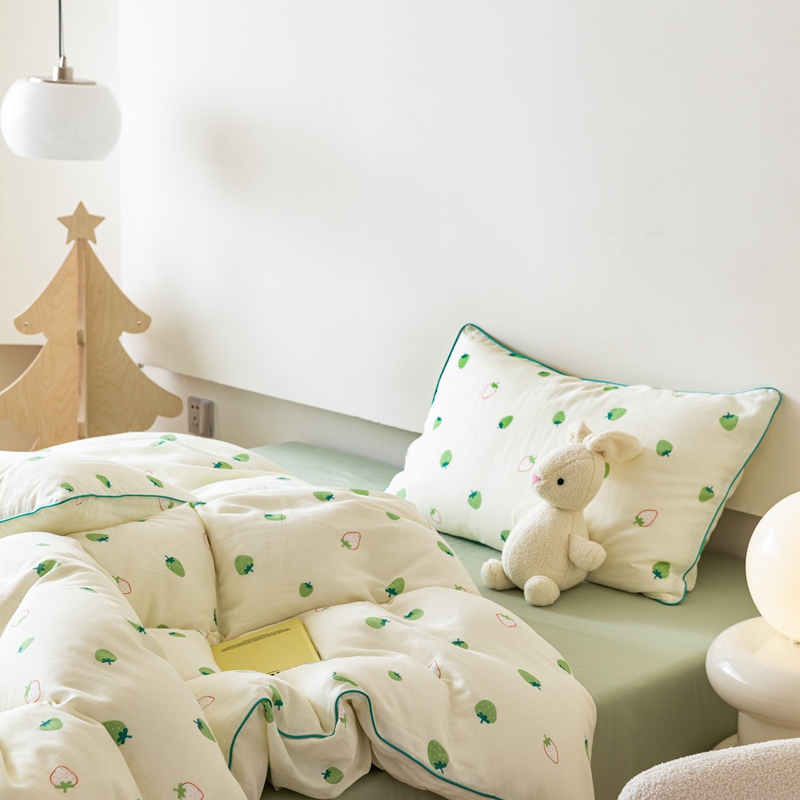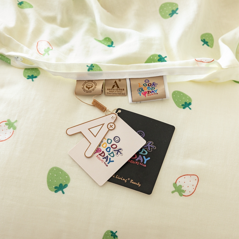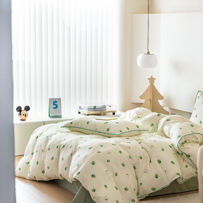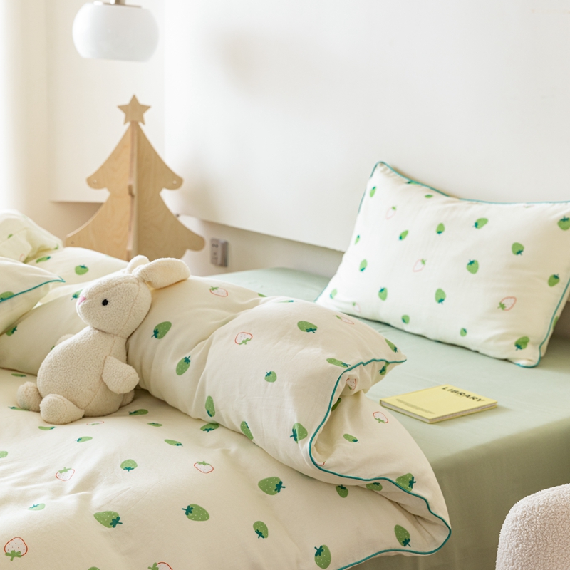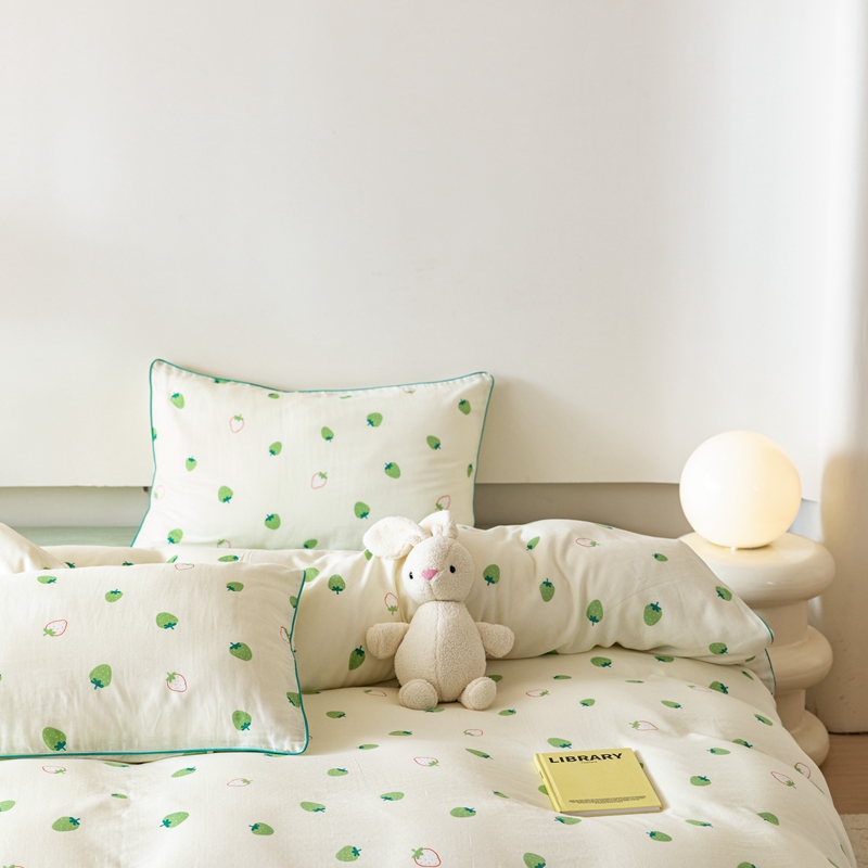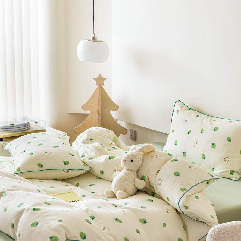 商品名称:本希 2023新款秋冬全棉a类双层纱四件套-小清新 奶油草莓