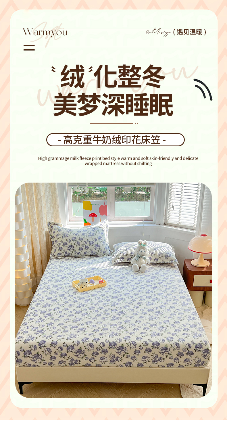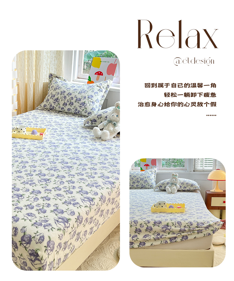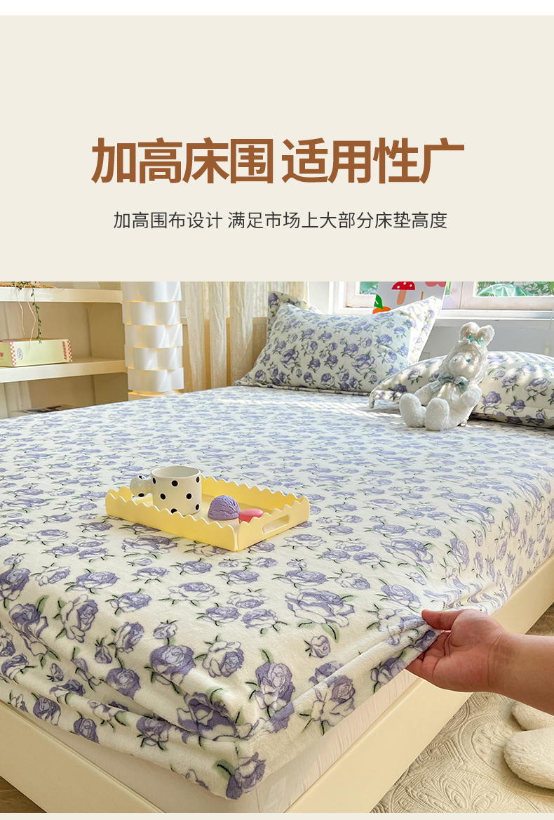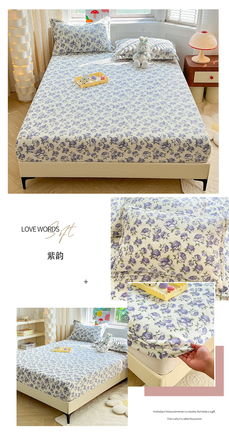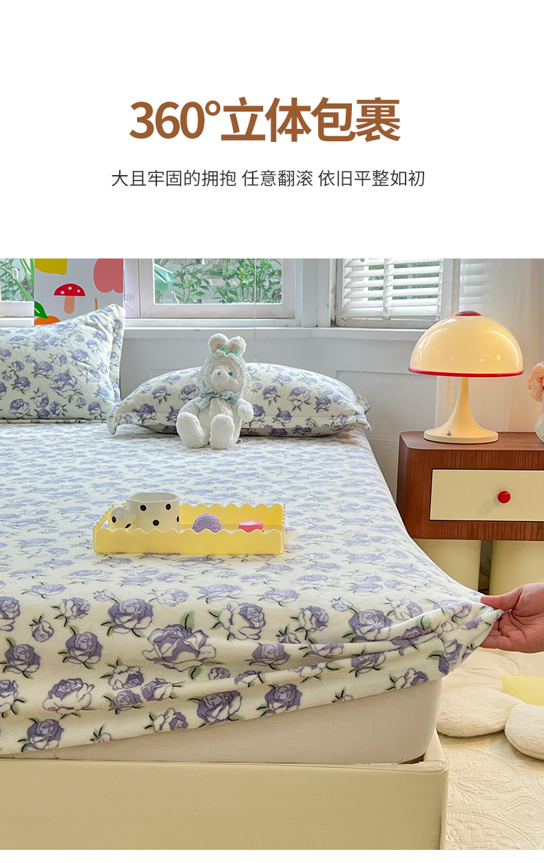 妖妖家纺 2023新款牛奶绒单床笠 紫韵