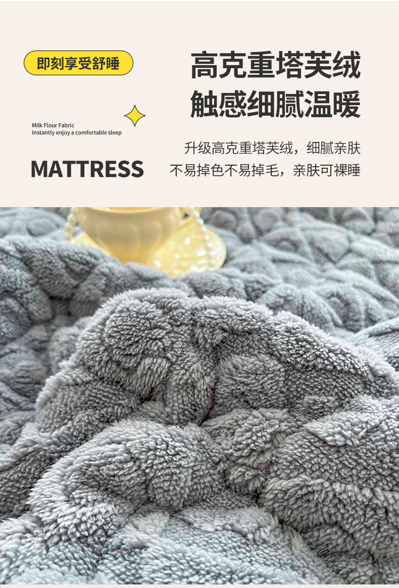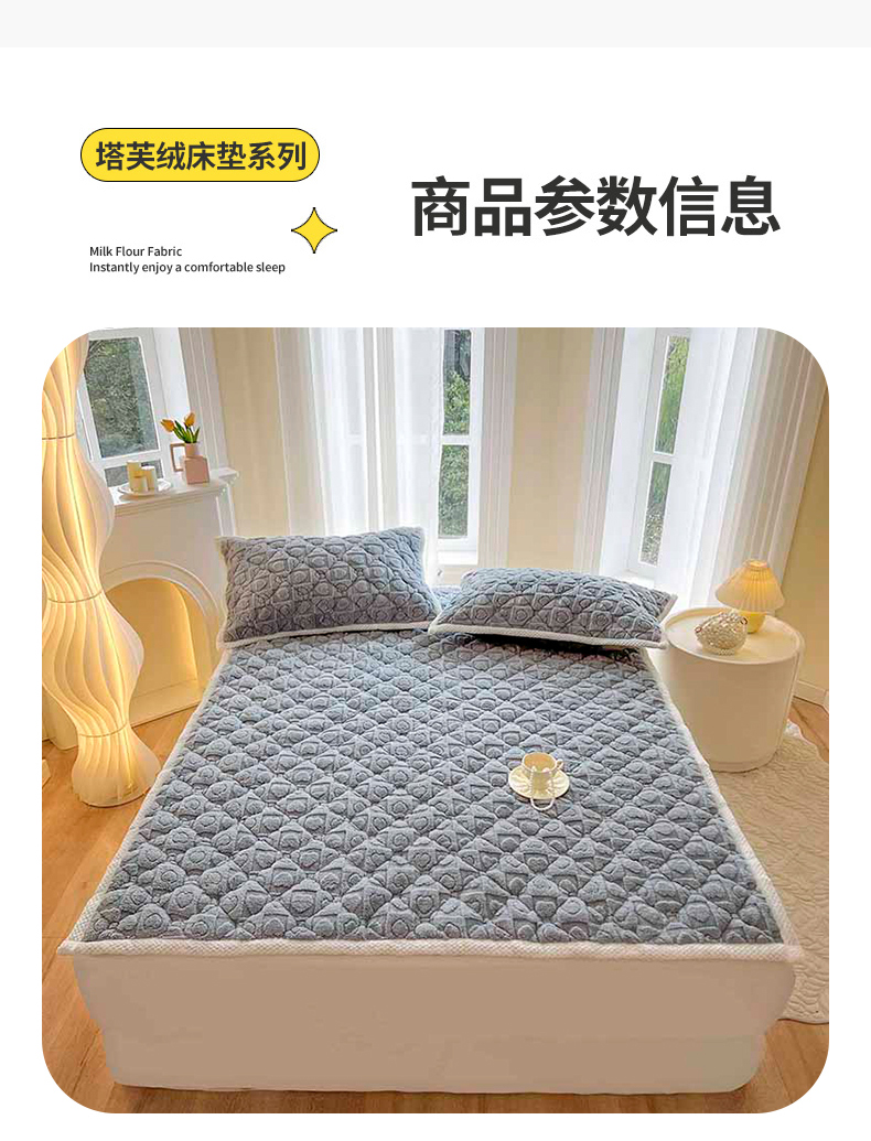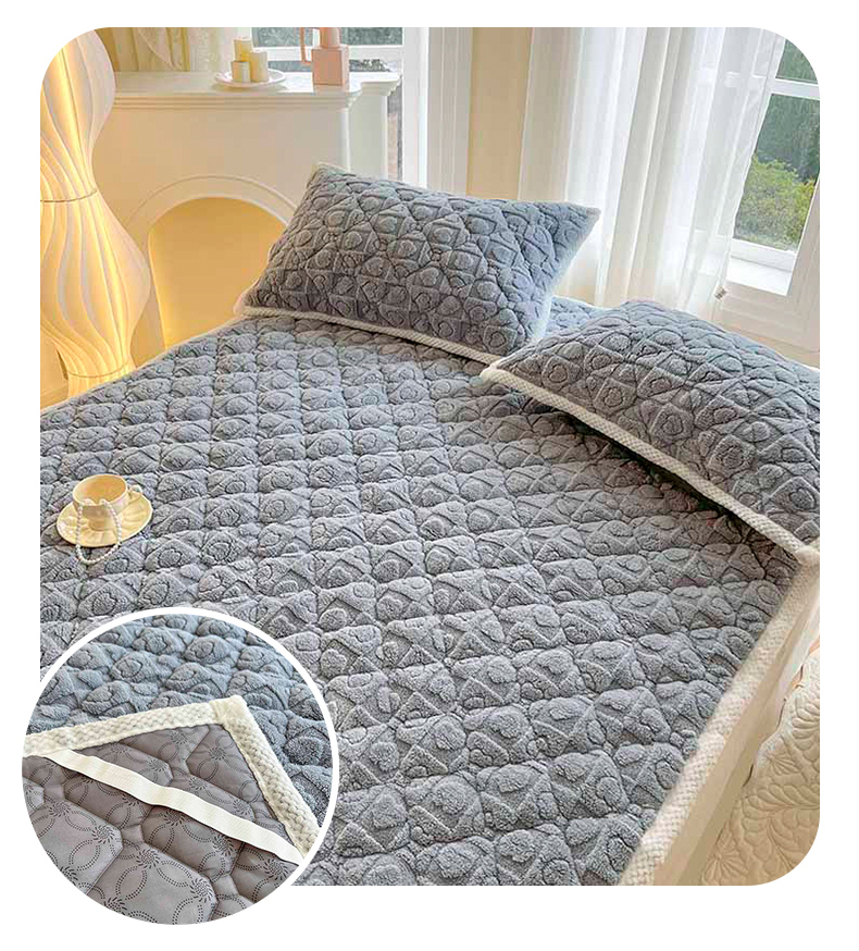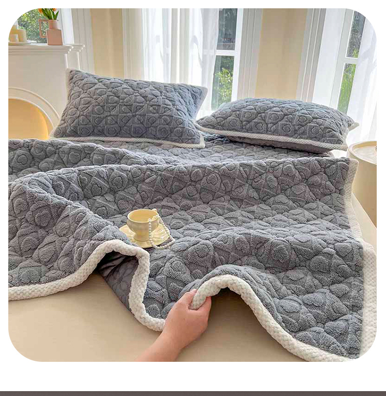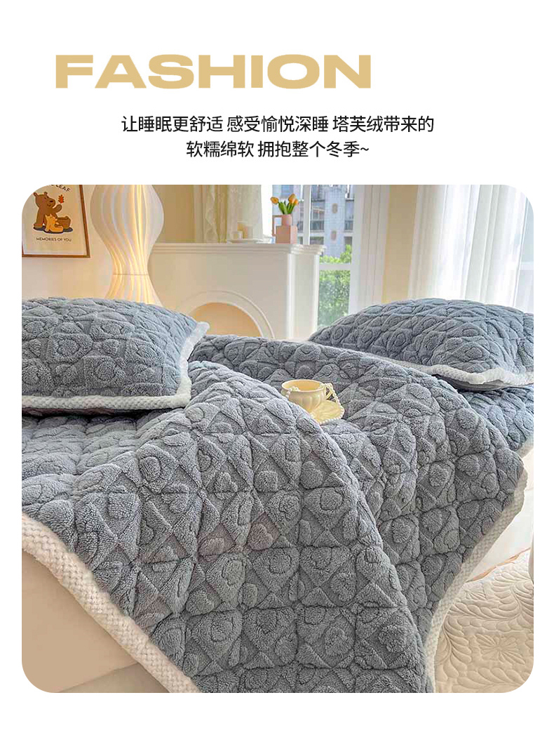 (总)欧邦 2025新款提花暖阳绒单床笠,苍穹蓝,初雪白,海棠粉,慕斯灰,青瓷绿,檀木咖