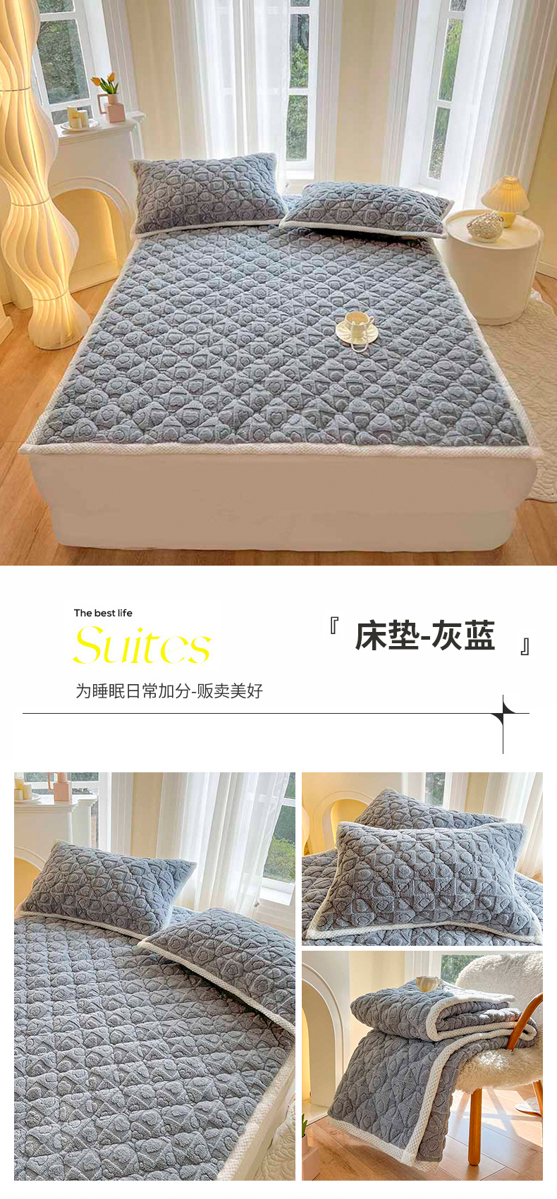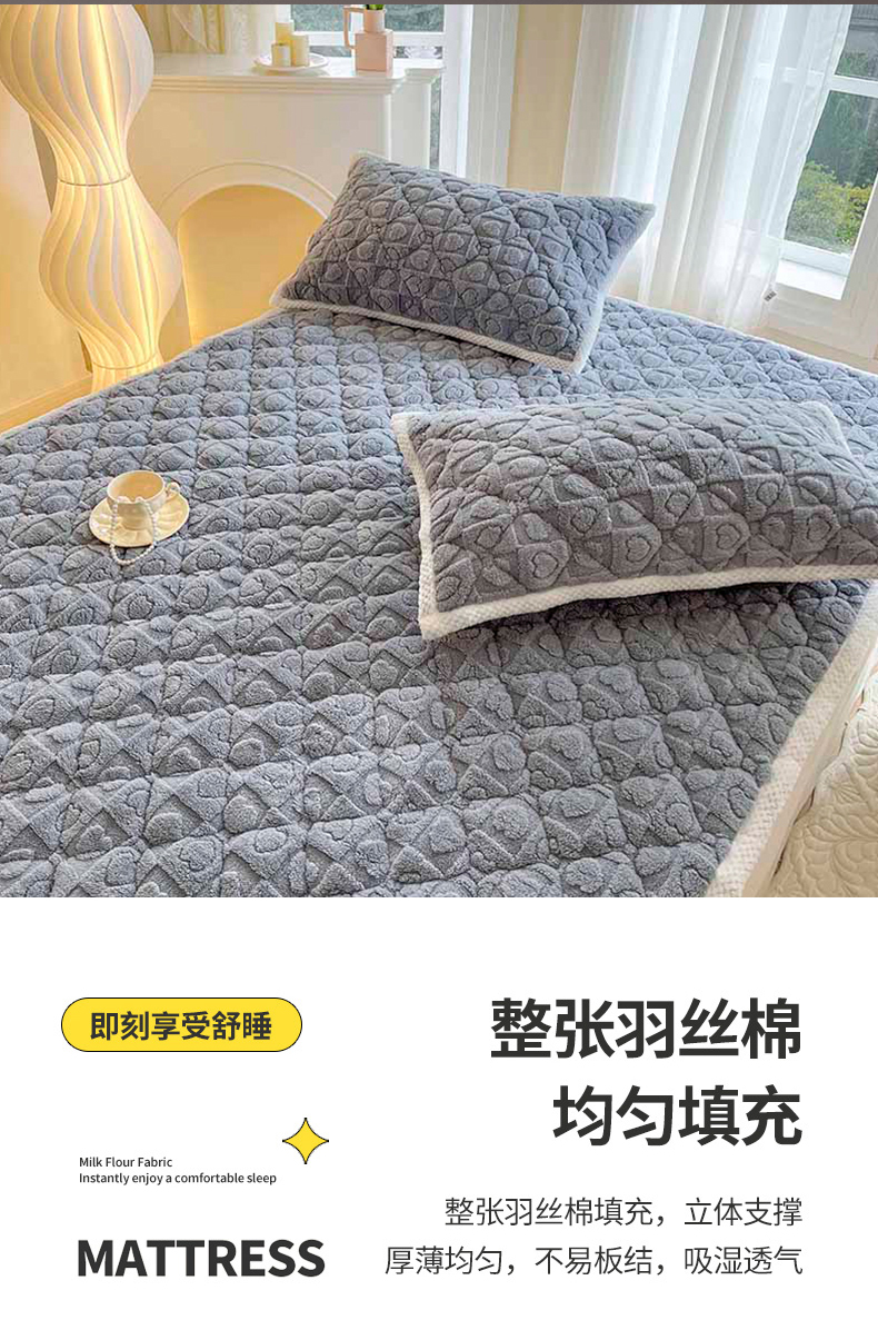商品名称:欧邦 新款爱心款提花塔芙绒夹棉床垫榻榻米薄垫子 床垫-灰蓝