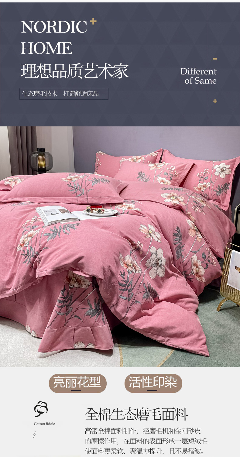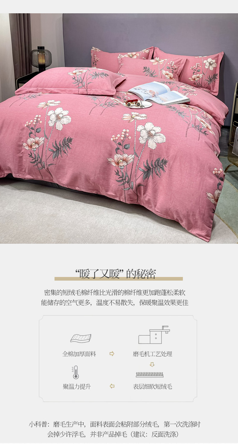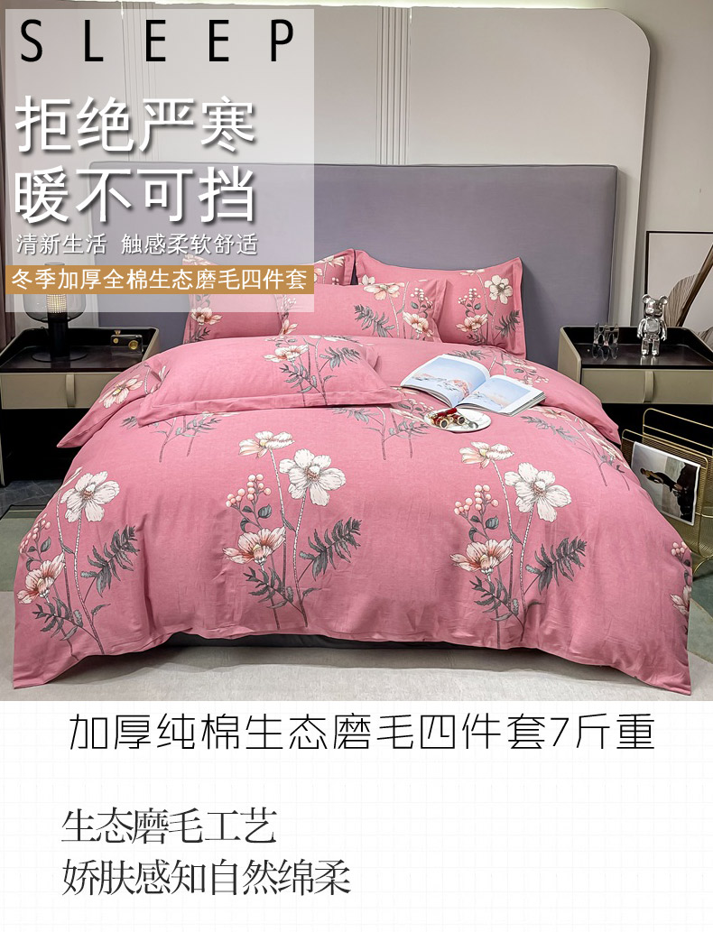 (总)晶缦家纺 2025新款加厚纯棉全棉磨毛四件套,爱恋羽叶豆沙,安梦灰,安梦咖,春风恋曲灰,春风恋影棕,淡颜粉,淡颜黄,格调熊猫棕,花灿烂绿,花曲里粉,寂香冷粉,寂香米,篱笆小筑粉,恋影春天粉,恋影春天绿,玫瑰时光黄,完美生活豆沙,熊可爱咖,叶梦格调,云夏灰,云岫流彩粉