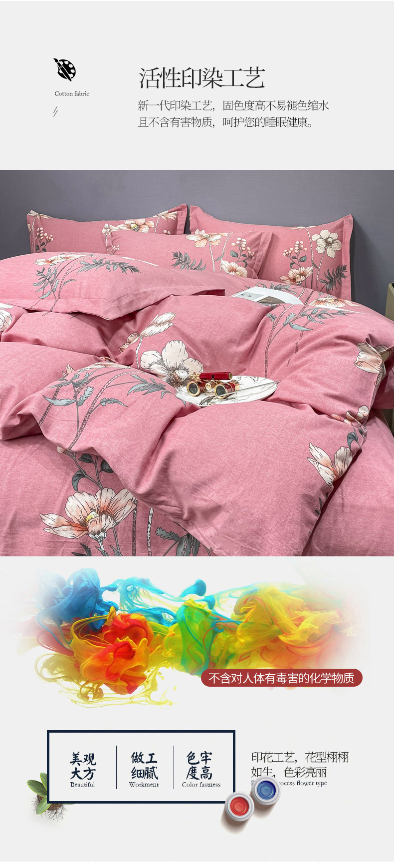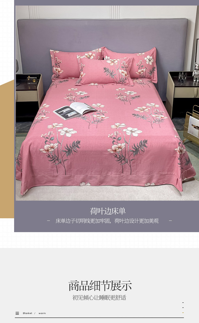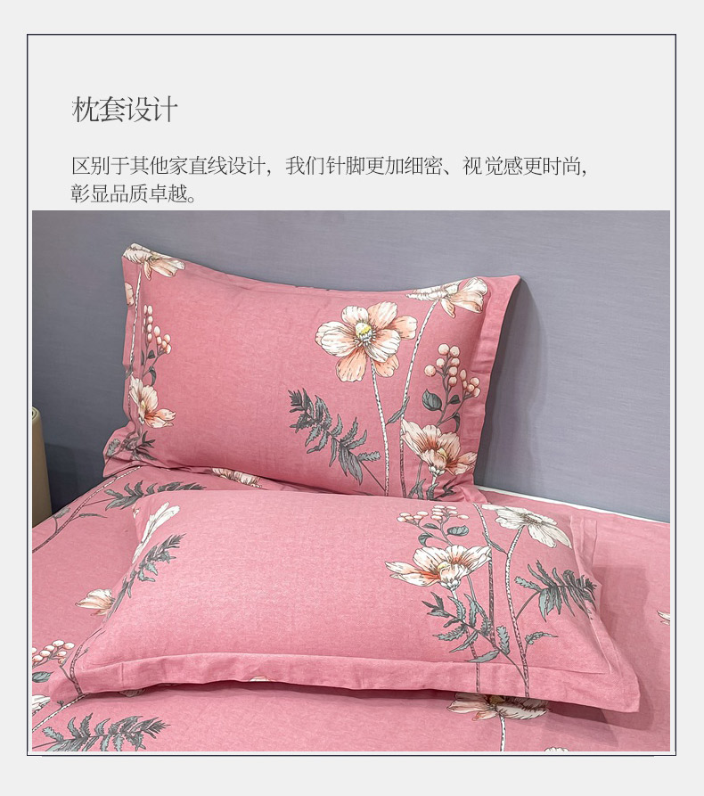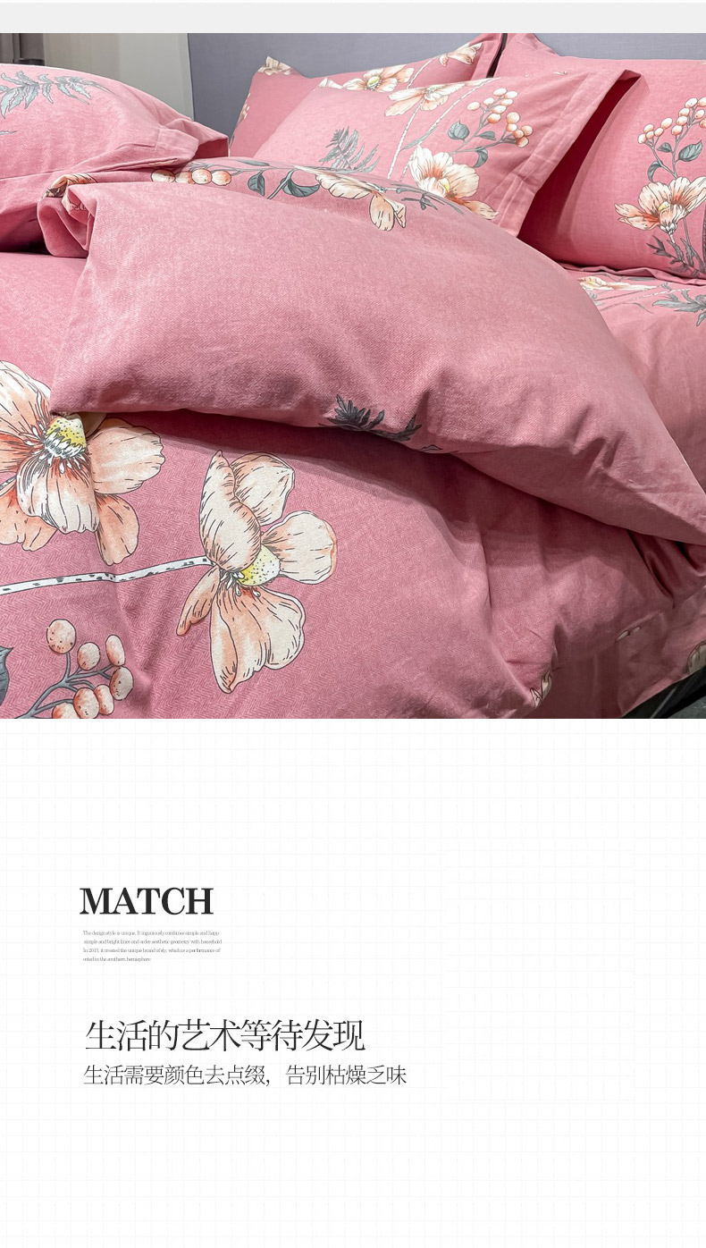 商品名称:晶缦家纺 2023新款风尚系全棉生态磨毛多规格四件套 听雨轩粉
