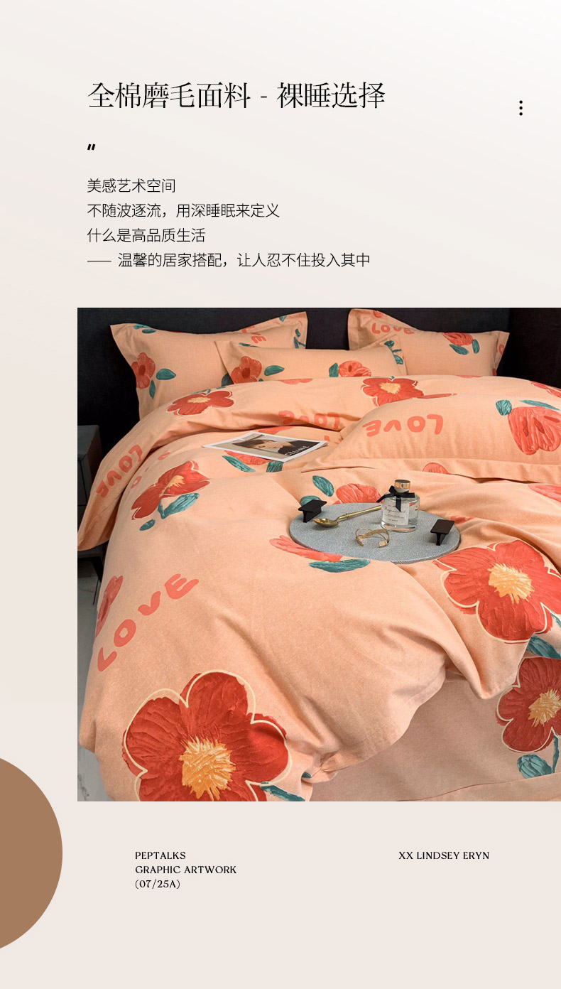 (总)晶缦家纺 2025新款加厚纯棉全棉磨毛四件套,爱恋羽叶豆沙,安梦灰,安梦咖,春风恋曲灰,春风恋影棕,淡颜粉,淡颜黄,格调熊猫棕,花灿烂绿,花曲里粉,寂香冷粉,寂香米,篱笆小筑粉,恋影春天粉,恋影春天绿,玫瑰时光黄,完美生活豆沙,熊可爱咖,叶梦格调,云夏灰,云岫流彩粉