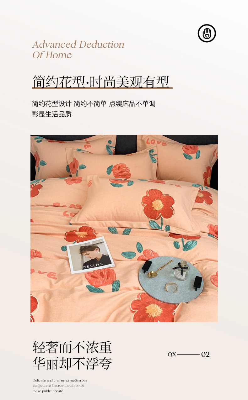 晶缦家纺 2023新款风尚系全棉生态磨毛多规格四件套 一念花开