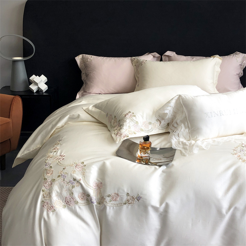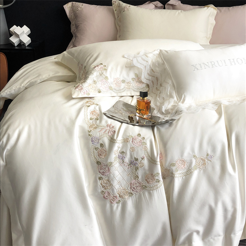 商品名称:馨蕊家居 2023新款100支CR工艺全棉四件套-棉卡洛琳 卡洛琳-月光白