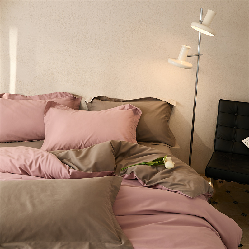 涞澳家纺 2023新款50磨绒双拼 藕棕粉