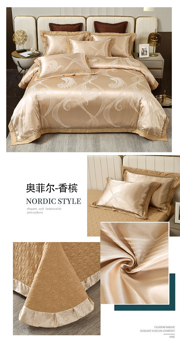 小时代家纺 2023新款纯棉贡缎提花夹棉单床盖奥菲尔-香槟,奥菲尔-香槟