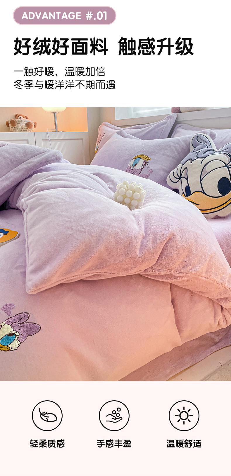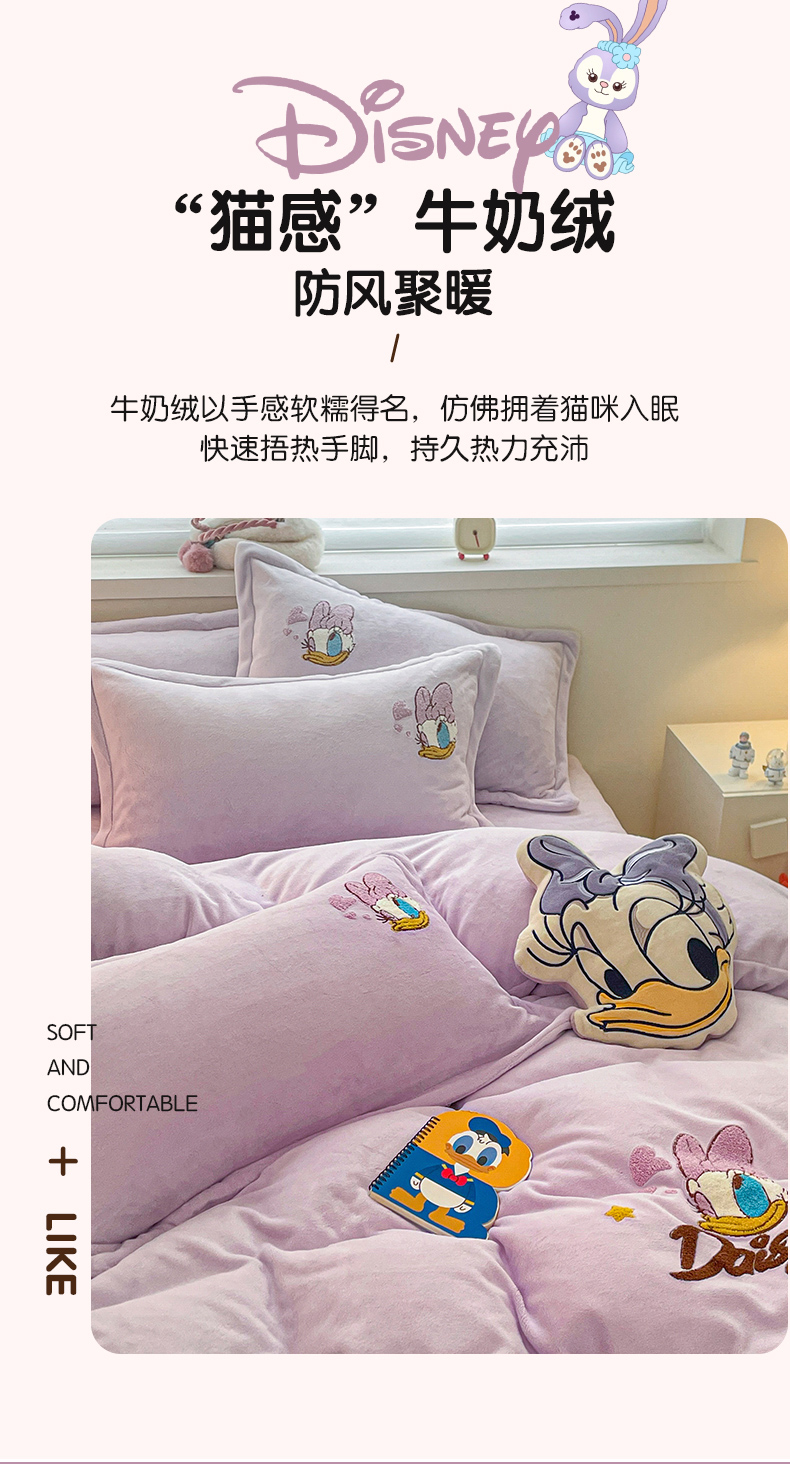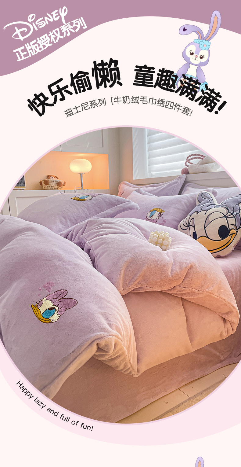 商品名称:丽美人家纺 2023新款迪士尼系列牛奶绒毛巾绣四件套 黛西