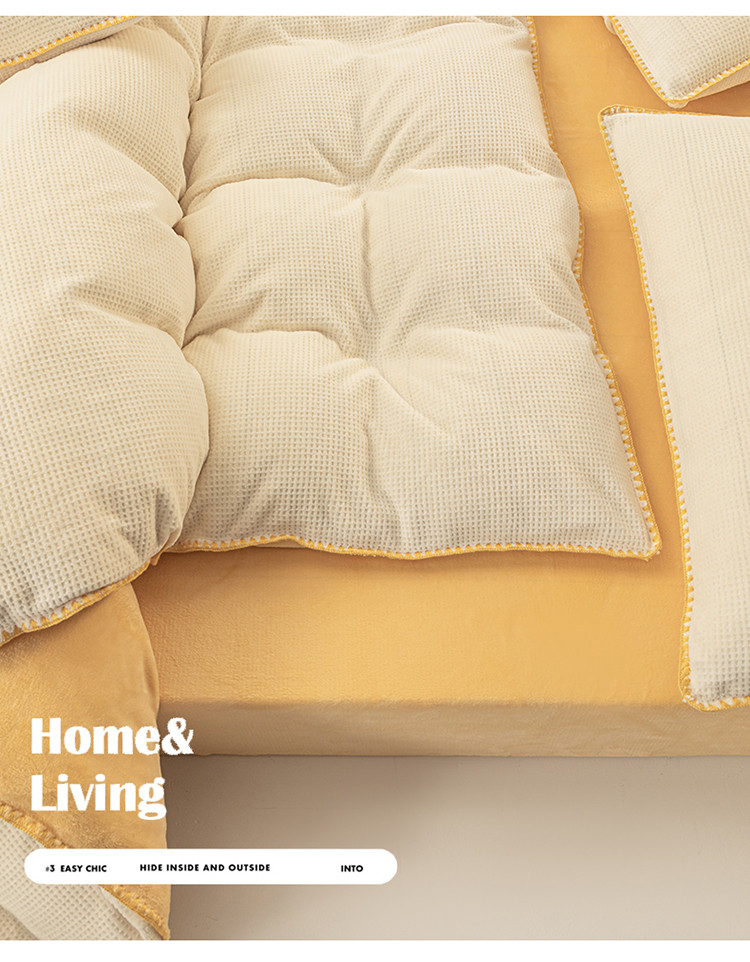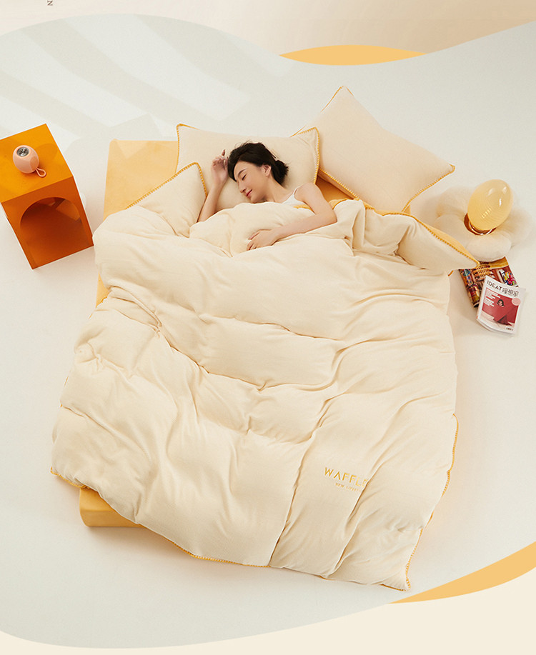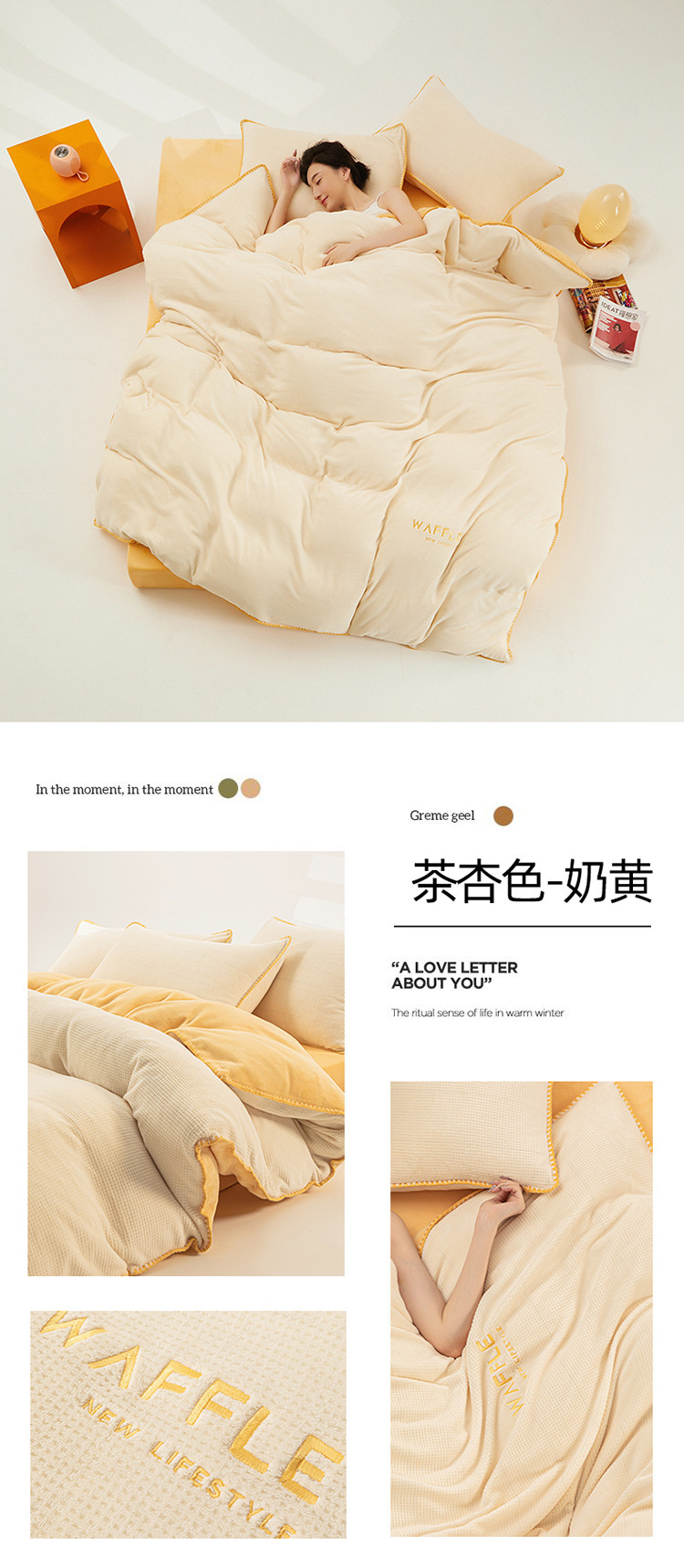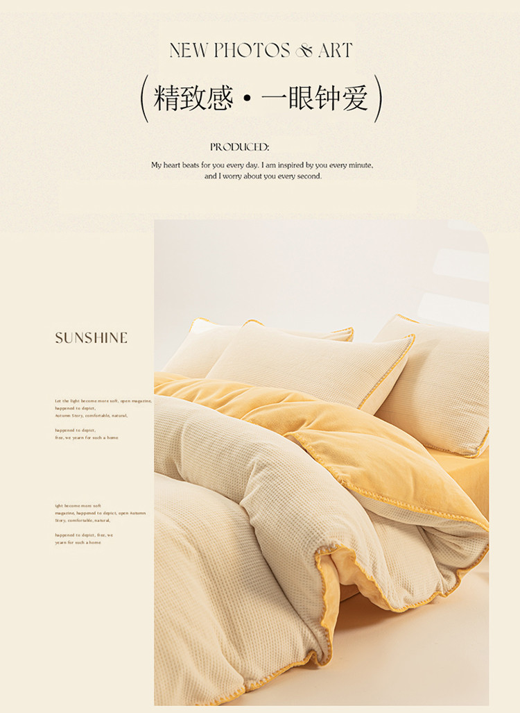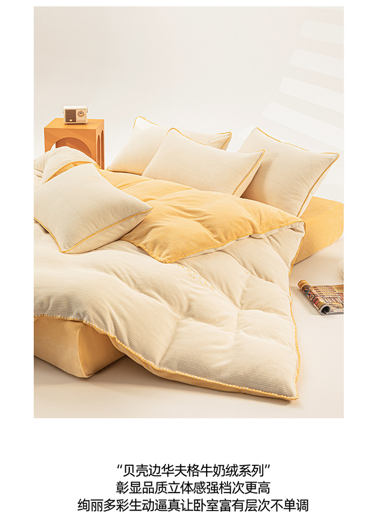 当前位置: 91家纺网 > 商品网购 > 床品套件 > 四件套 > 牛奶绒四件套 > 吾诺2023秋冬贝壳边华夫格牛奶绒四件套-纯净版拍摄风格 茶杏色-奶黄