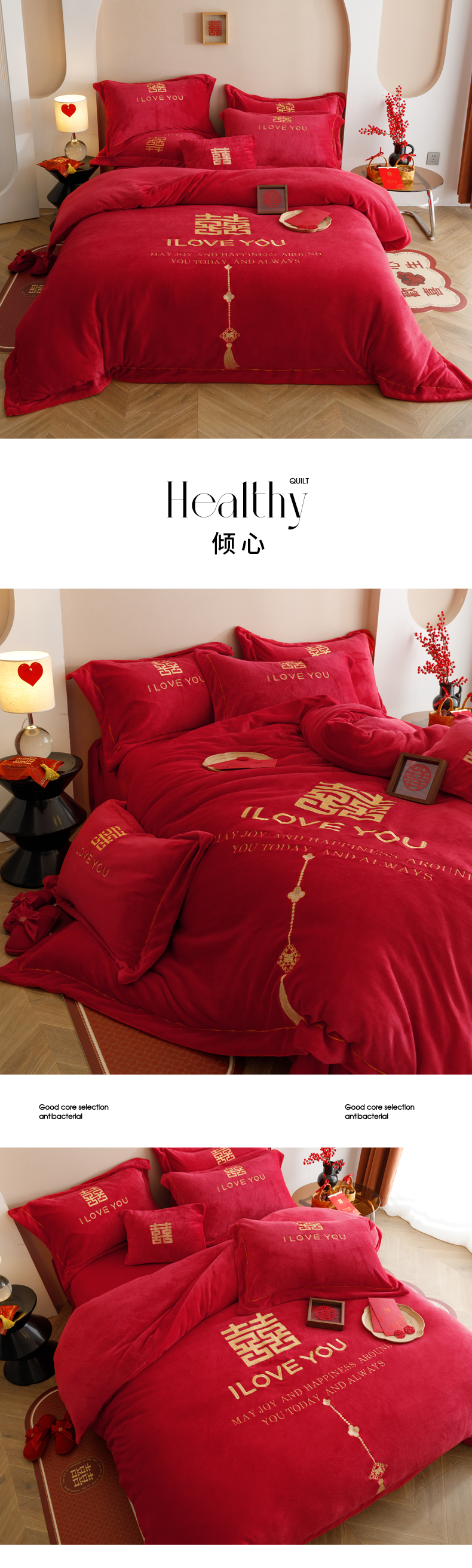 (总)铭动2023新款高克重牛奶绒刺绣款婚庆大红色新婚四件套,花嫁,倾心