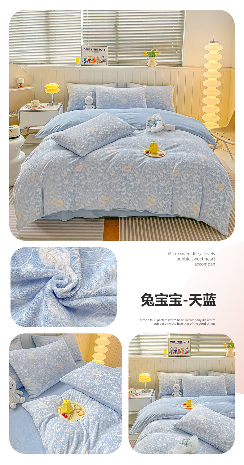 二八年华 2023新款全消光高克重双色雕花四件套 兔宝宝-天蓝