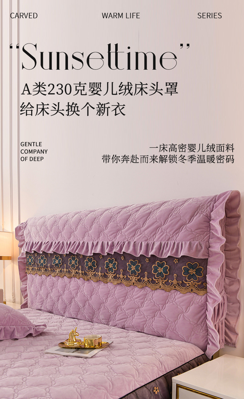 商品名称:源梦家纺 2023新款A类230克婴儿绒床头罩-盛世牡丹 盛世牡丹-浅紫色
