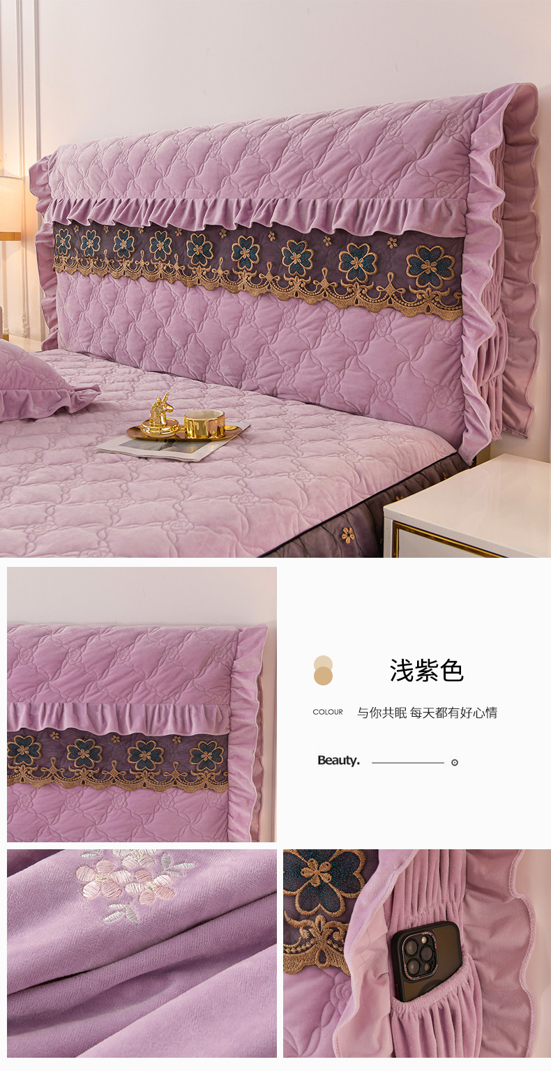 (总)怡源梦 2025新款A类牛奶绒夹棉床笠三件套-甜心公主系列,灰色,咖色,大红色,粉玉色,绿色,米白色,紫色