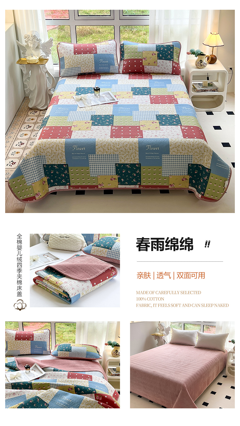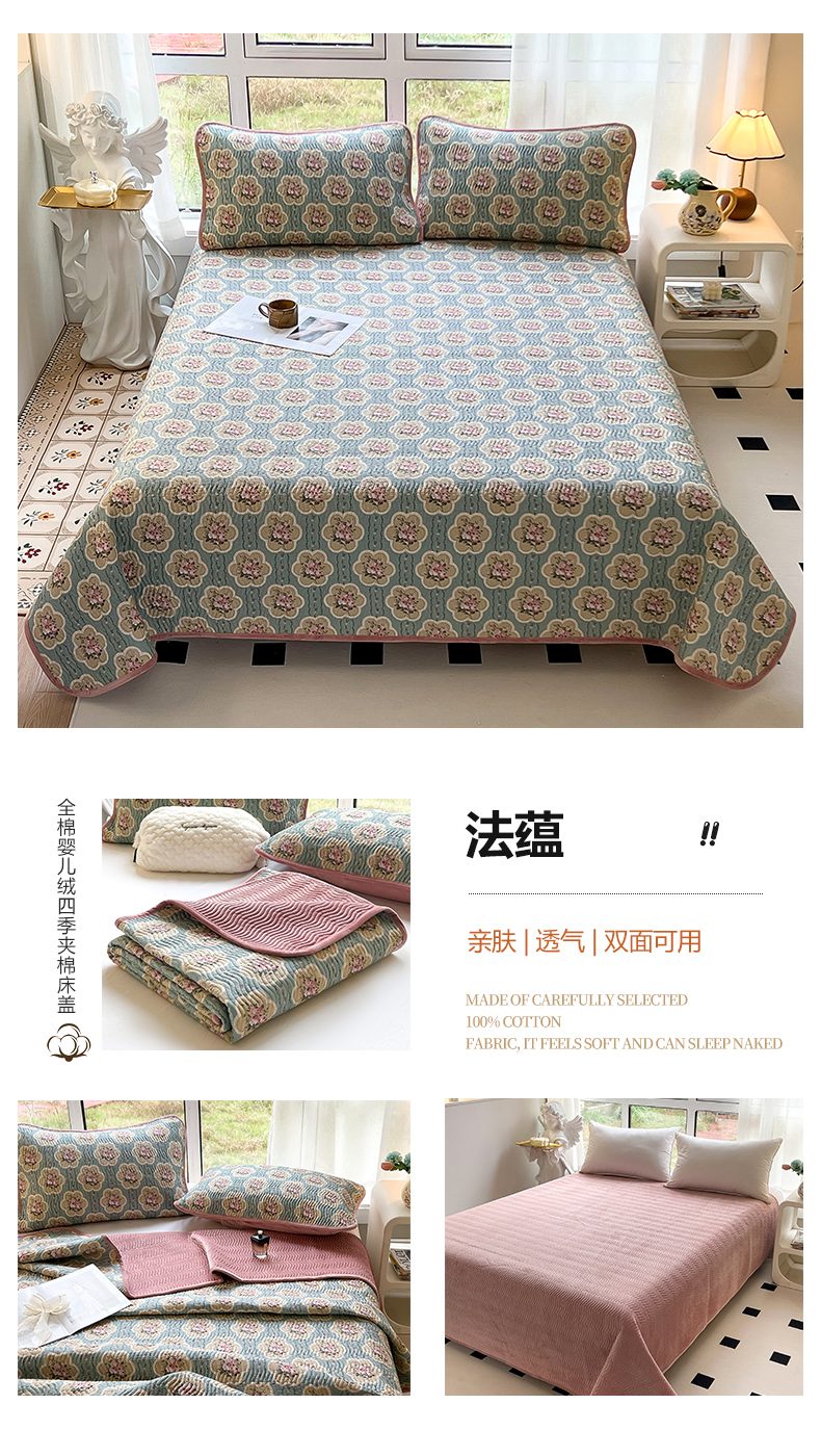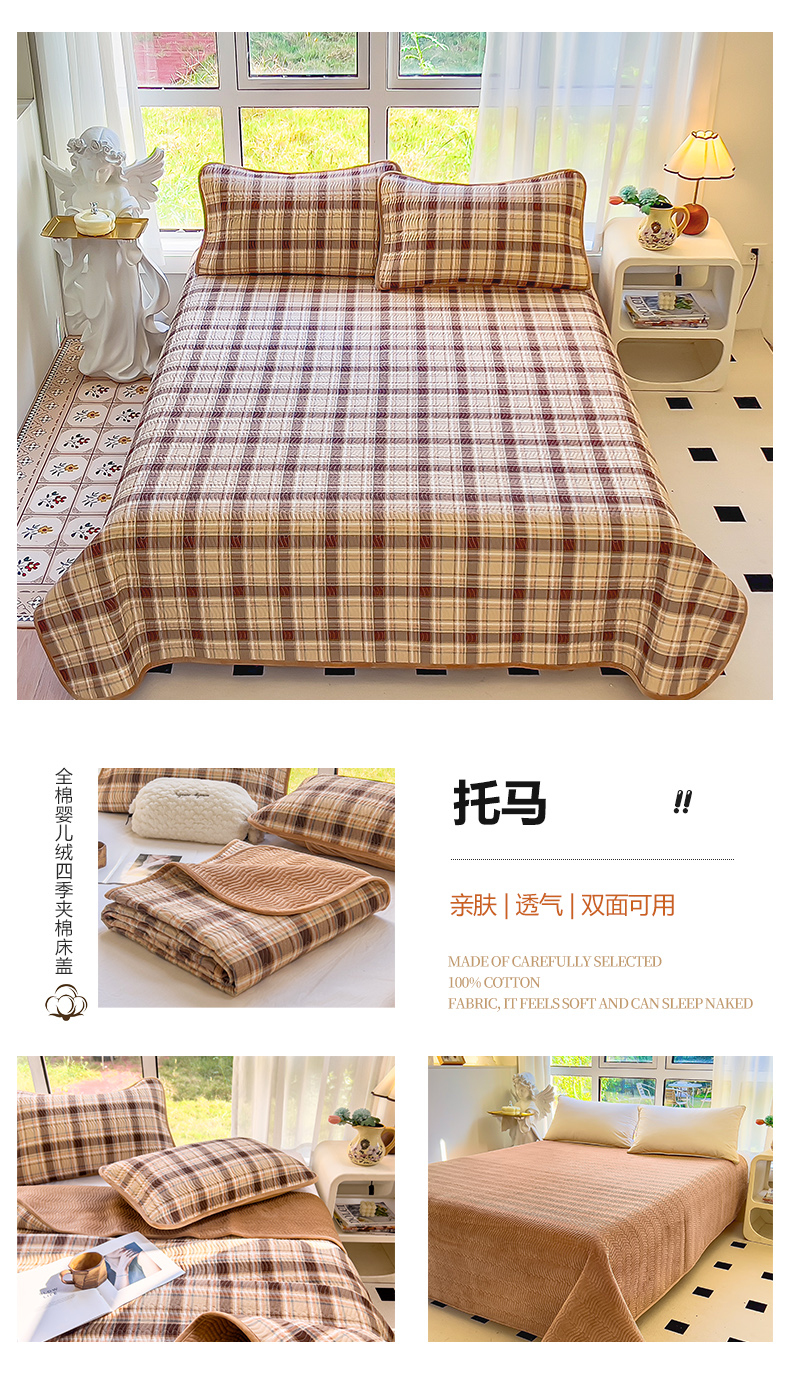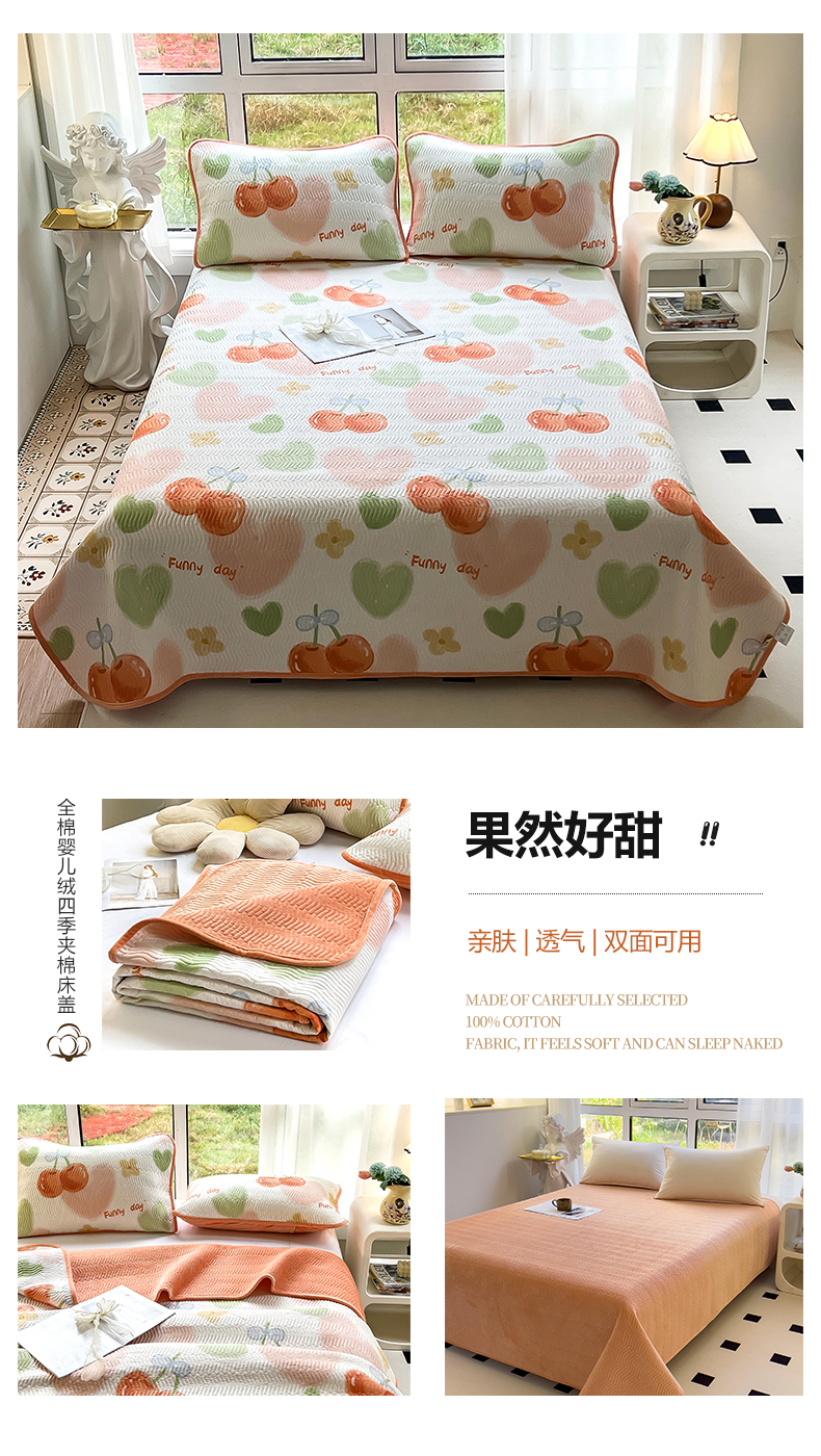 (总)2024新款40支棉加绒单床盖三件套双面可用全棉加厚婴儿绒