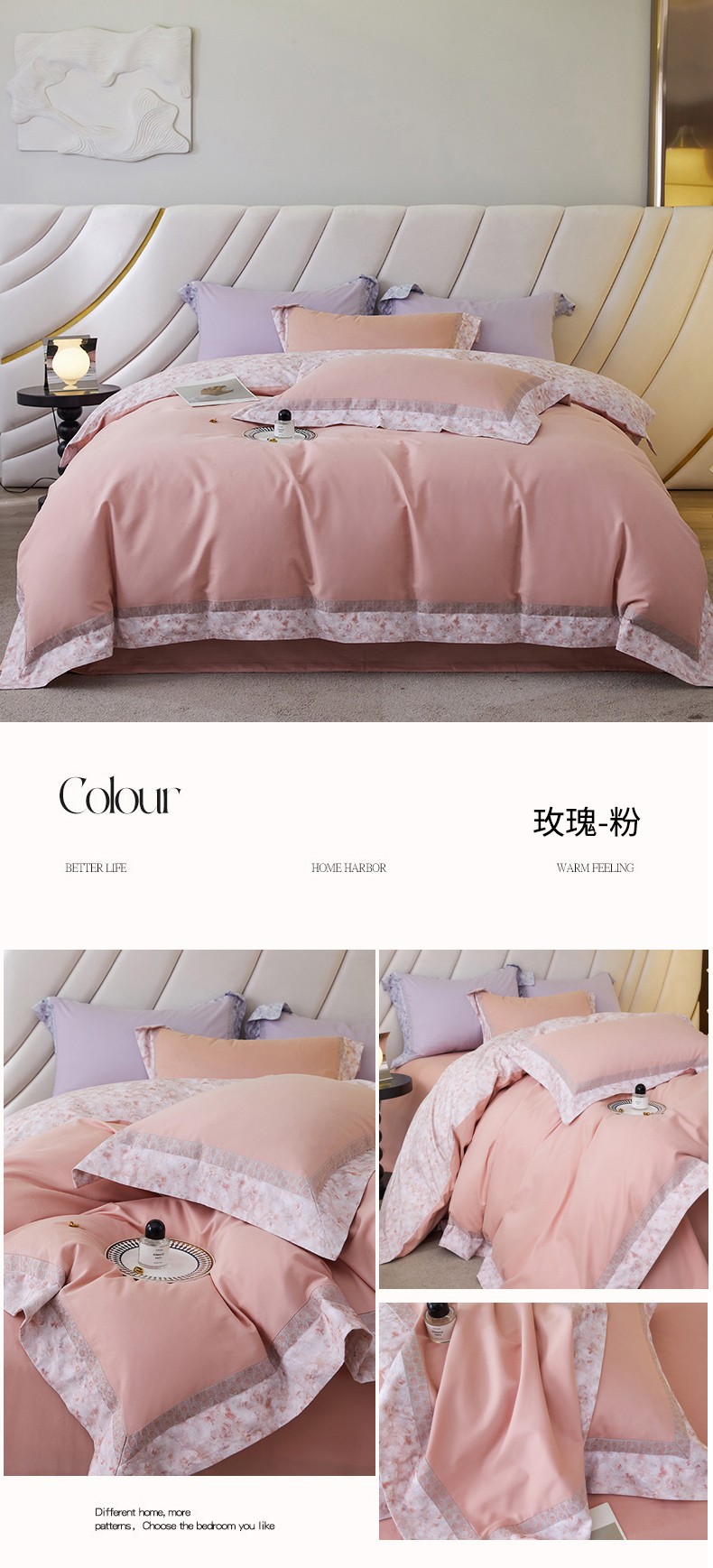 (总)淼铭家纺 2025秋冬新款婴肤绒双拼绣花四件套-雅韵系列,雅韵白,雅韵粉,雅韵灰,雅韵驼,雅韵紫