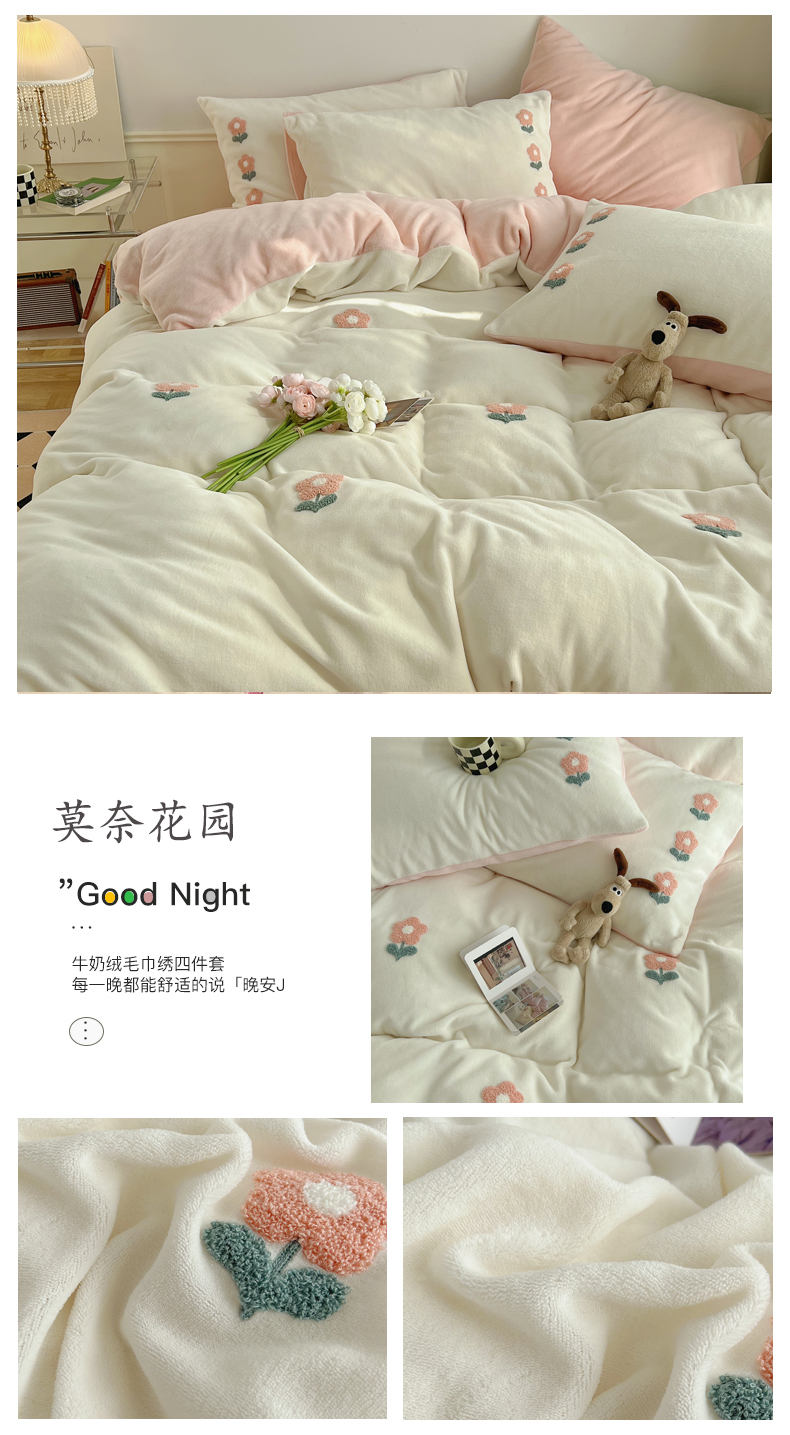 商品名称:(总)三朵家纺 2023新款高克重牛奶绒毛巾绣绣花四件套