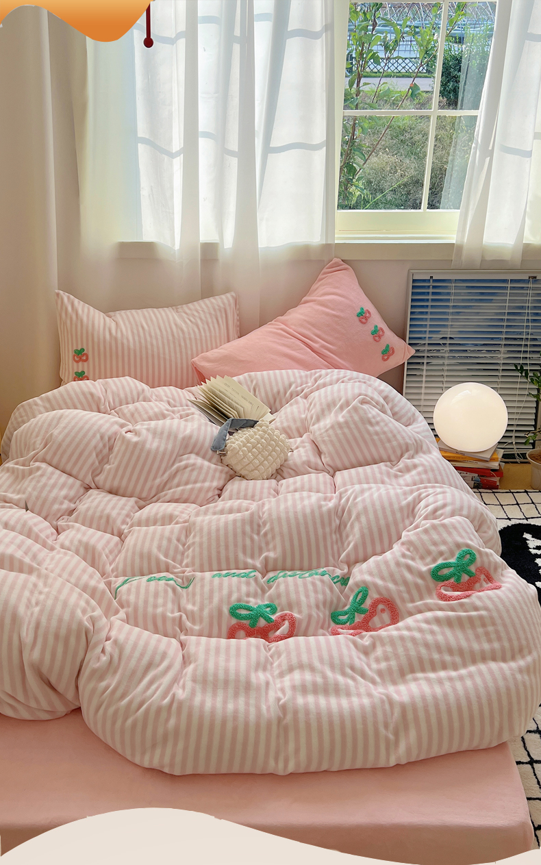(总)三朵家纺 2024新款牛奶绒绣花四件套三丽鸥系列,草莓公主KT,梦幻旅行,逃学帕恰,淘气宝贝,甜心搬运工,香香公主KT,樱桃美乐蒂