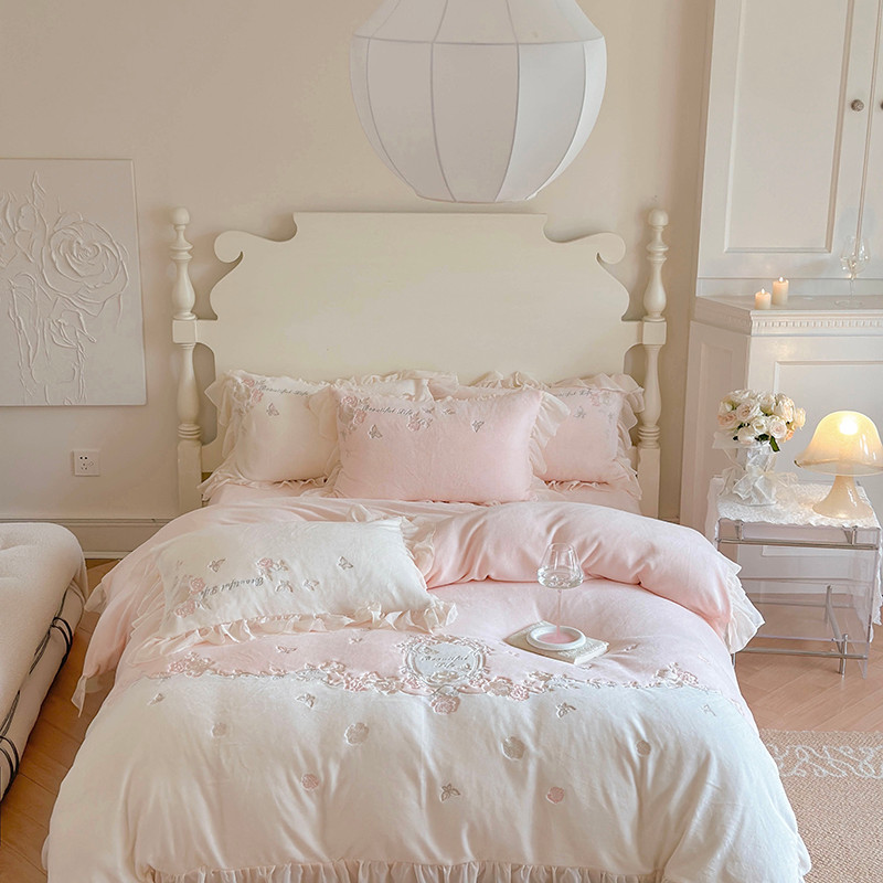 (总)MIU缪家居 2025新款100支全棉四件套-洛丽塔,洛丽塔-白,洛丽塔-粉,洛丽塔-红