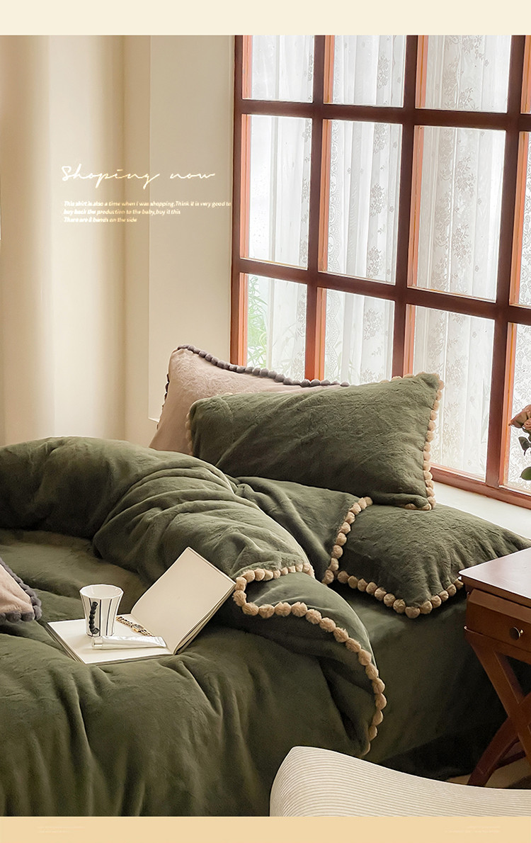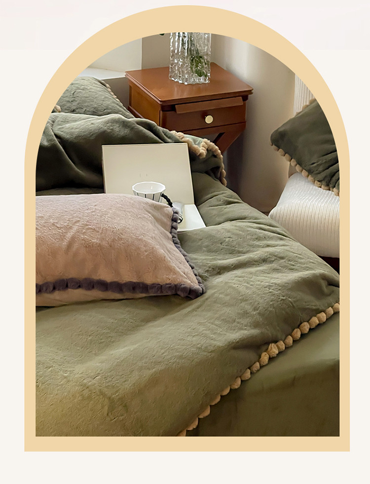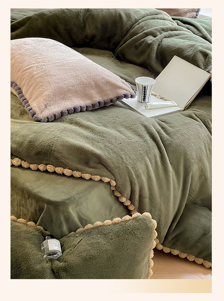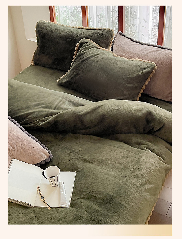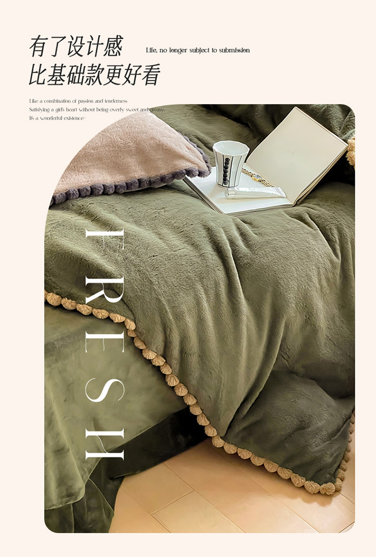名品优仓 2023新款兔绒边带球球款纯色系列四件套-兔绒球球 兔绒球球-绿蕉
