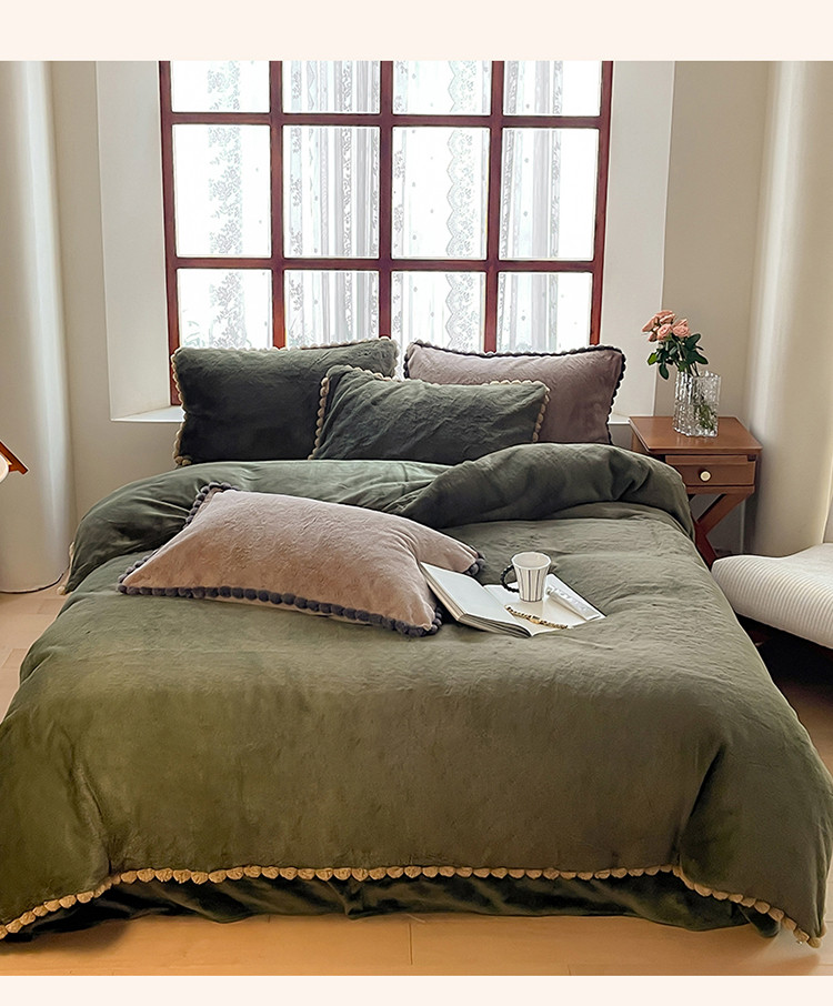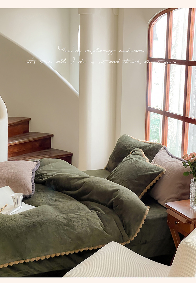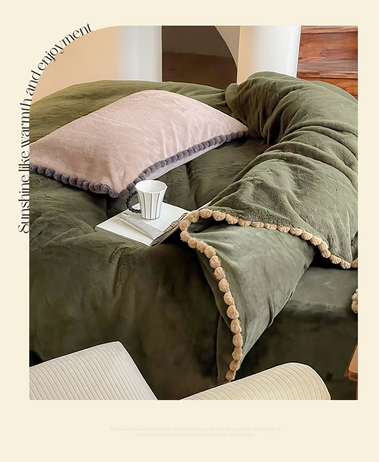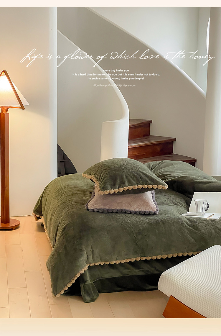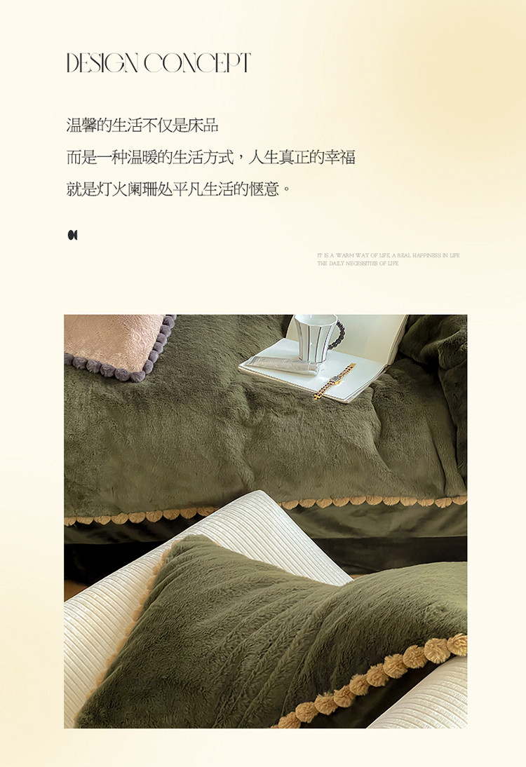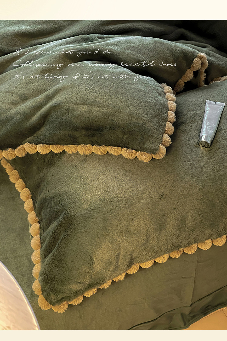 名品优仓 2023新款兔绒边带球球款纯色系列四件套-兔绒球球 兔绒球球-绿蕉