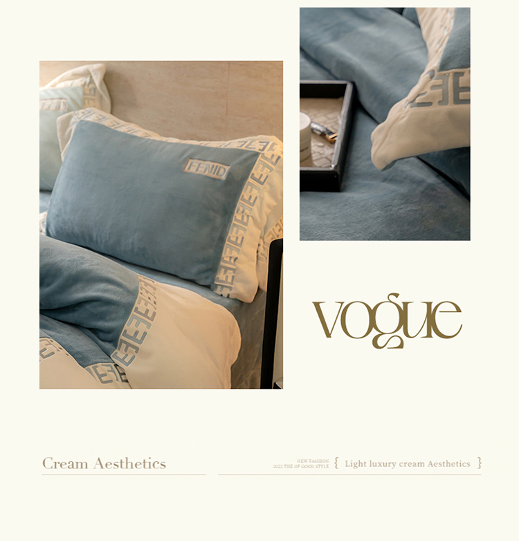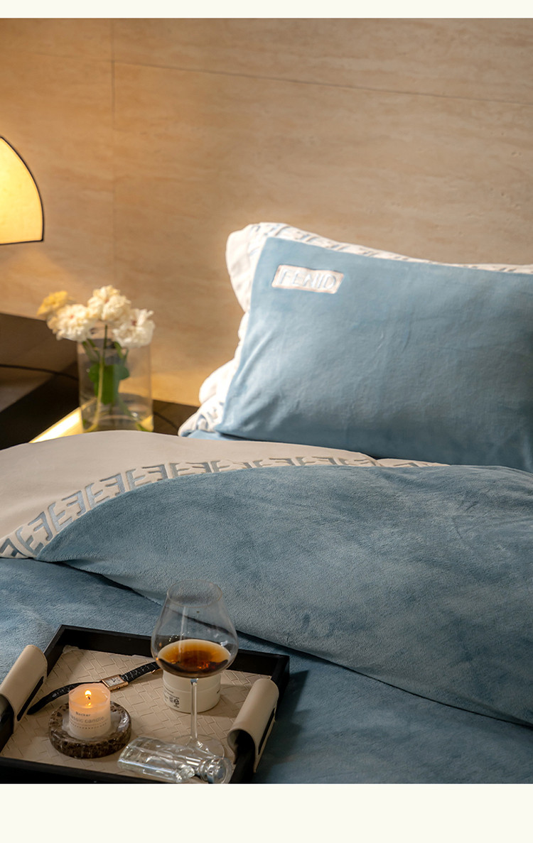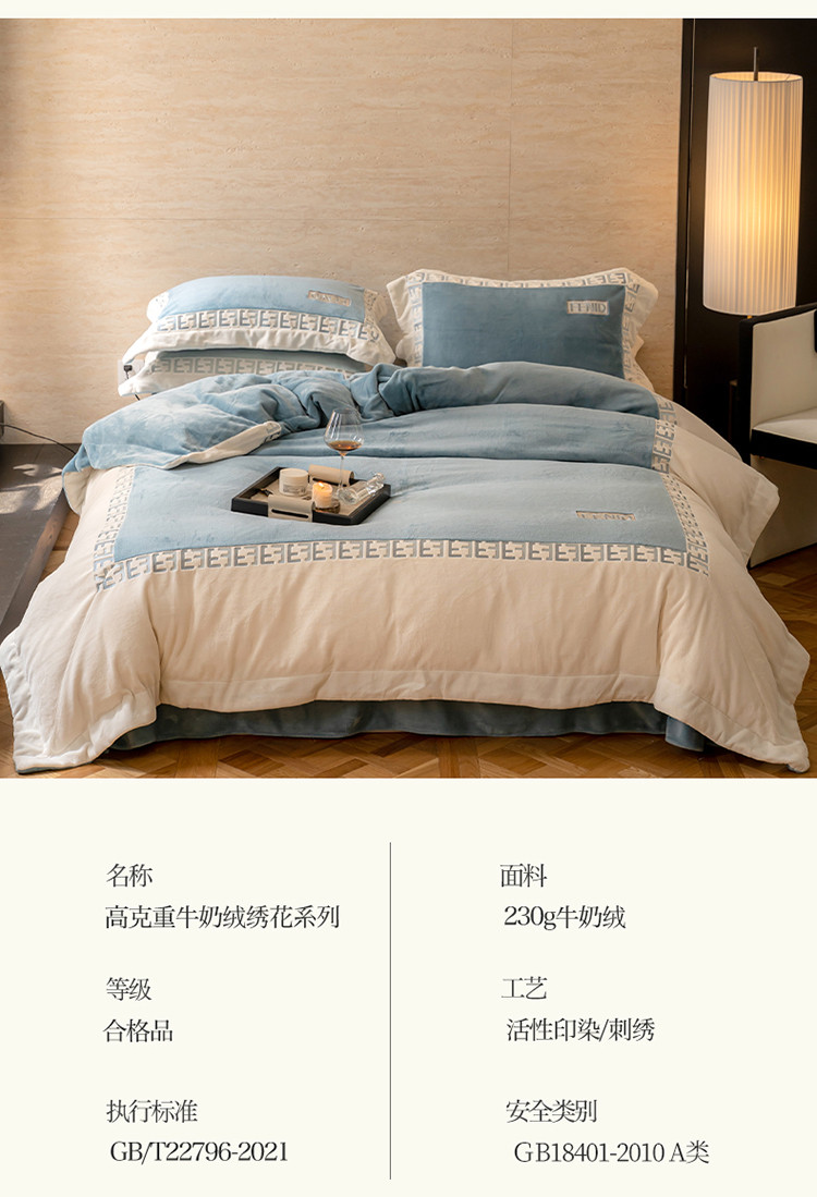 名品优仓 2023新款高克重230克牛奶绒绣花款四件套-玛丽 玛丽-星月蓝