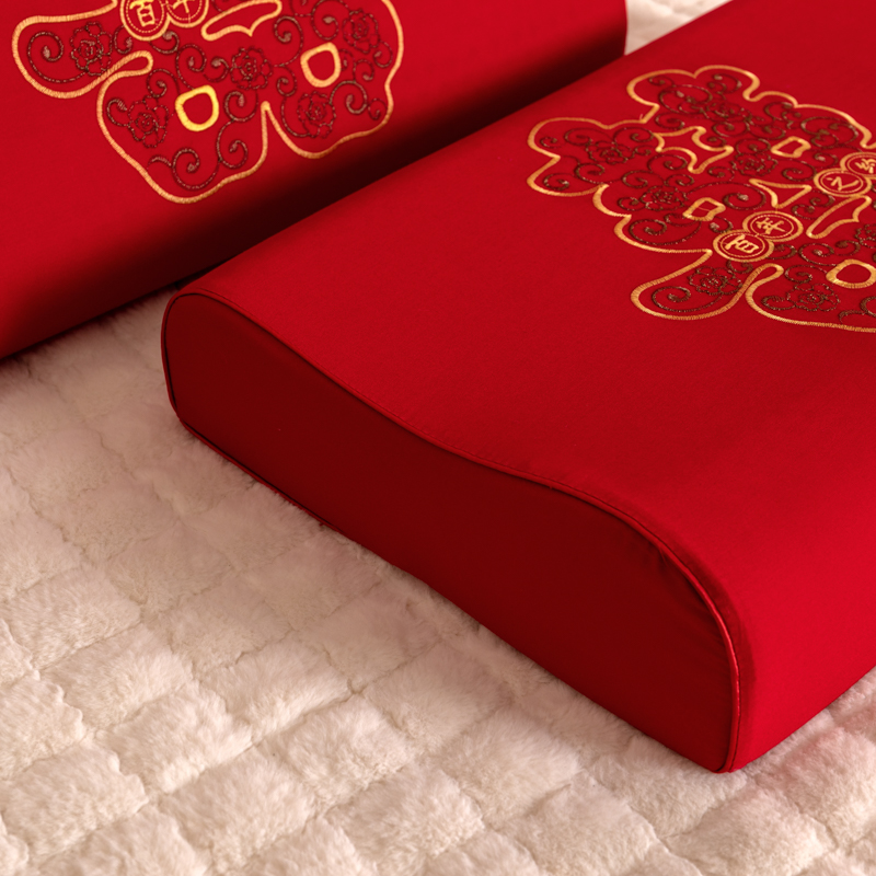 商品名称:桐格乳胶 2023新款乳胶枕全棉婚庆乳胶枕头结婚枕芯含内外套 百年好合
