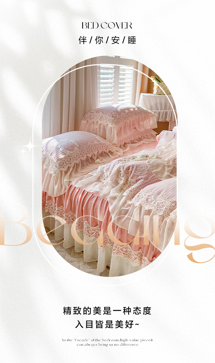 当前位置: 91家纺网 > 商品网购 > 床品套件 > 四件套 > 牛奶绒四件套 > 麒豆豆 2023新款高克重雕花牛奶绒四件套花边款花间浪漫嫩粉色