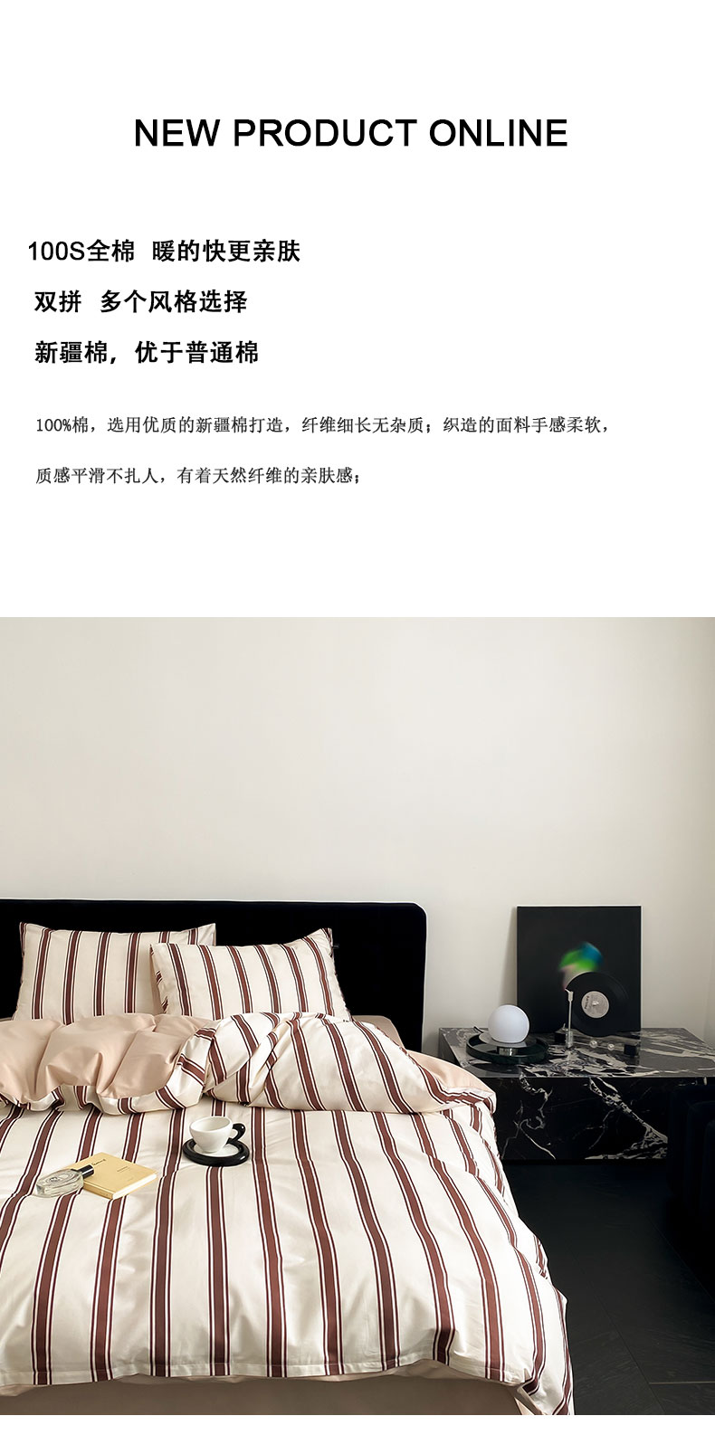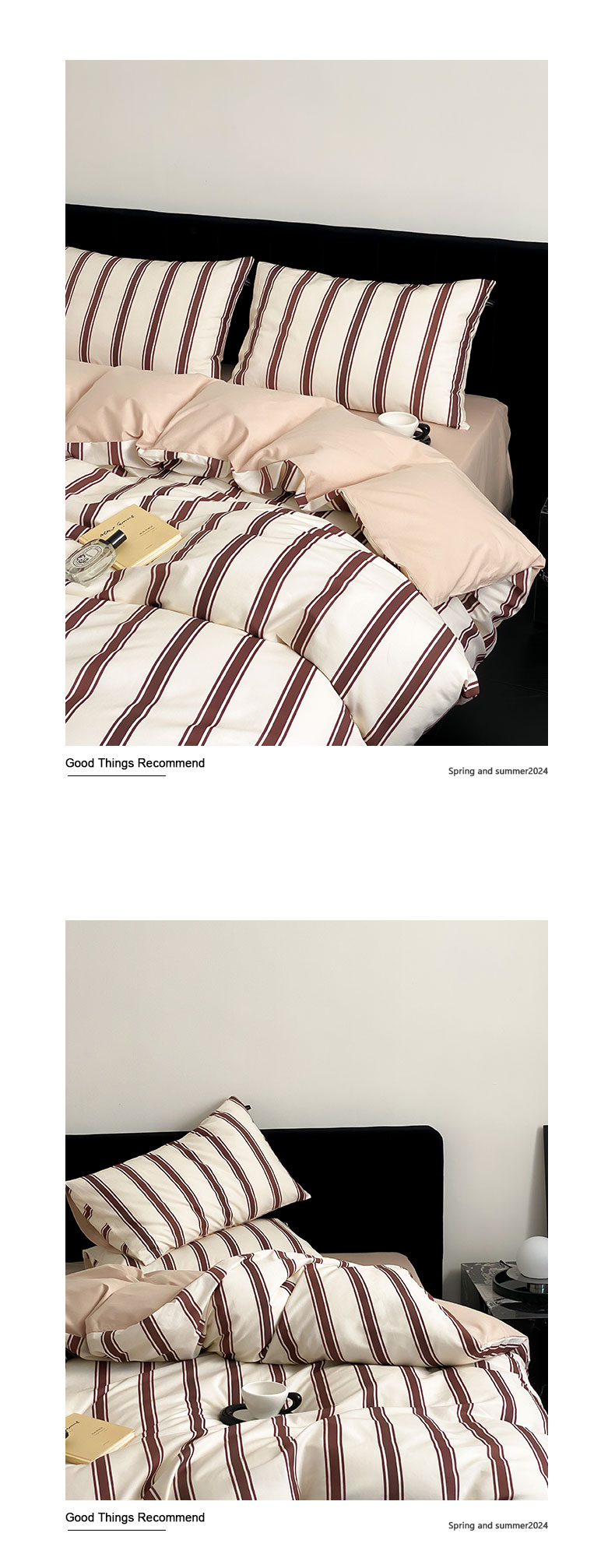 商品名称:Mr.pig猪先生水洗棉 2023新款A类全棉印花竖条纹四件套 复古红竖条
