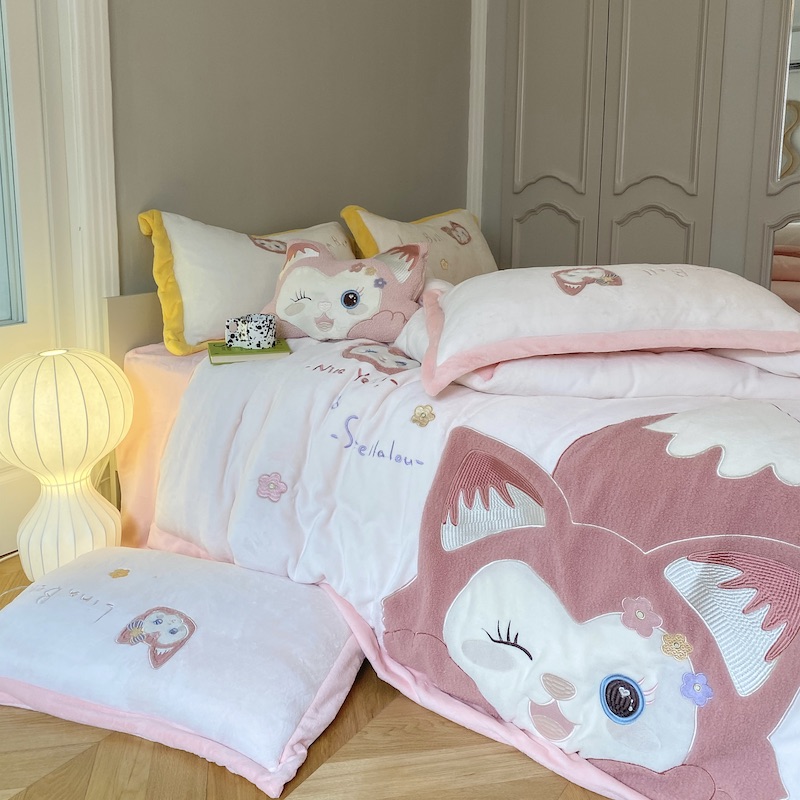 (总)紫碧螺家纺 2025新款牛奶绒绗绣裙式床盖三件套,暖黄,银灰,绿色,粉色,奶白,浅紫