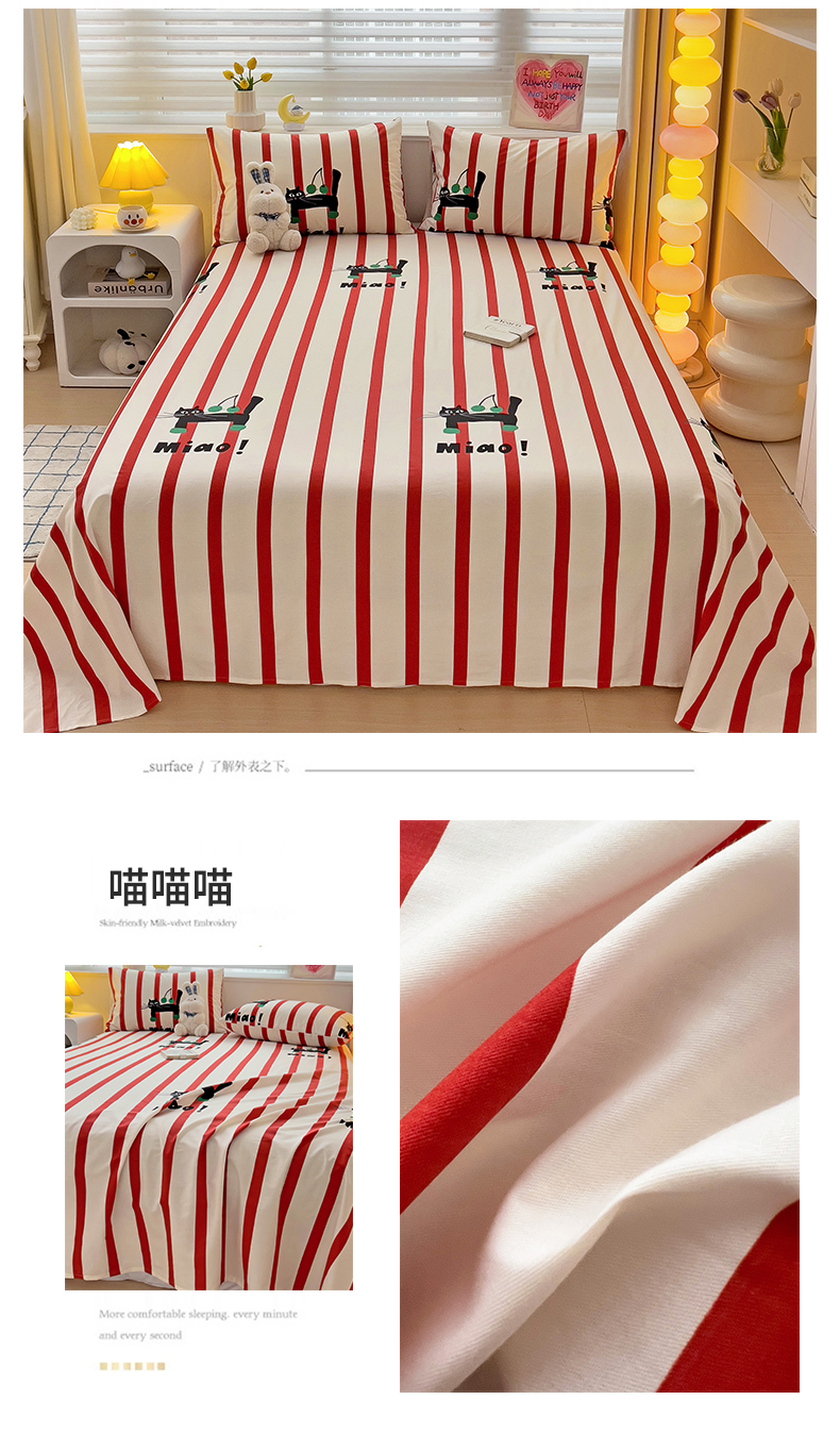 • 91家纺网 家纺一手货源 找家纺 名兮家居 2024新款小清新全棉单品床单 喵喵喵