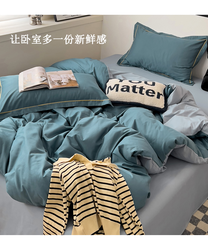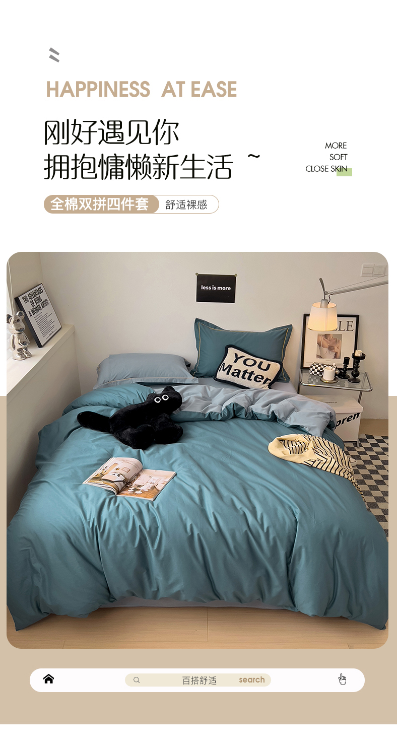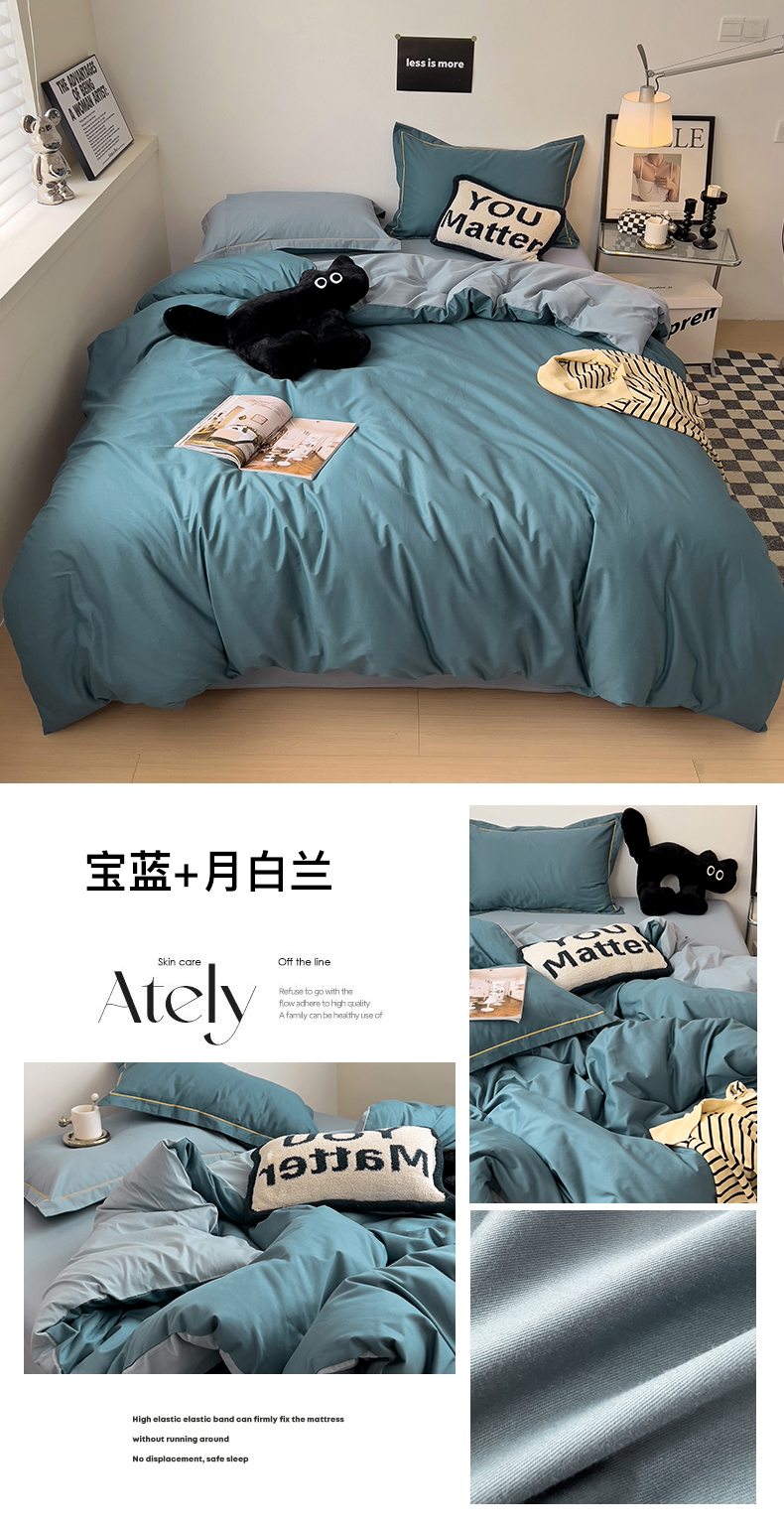当前位置: 91家纺网 > 商品网购 > 床品套件 > 四件套 > 全棉普通四件套 > 恩泽家纺 2024新款全棉13372纯色双拼系列四件套 宝蓝+月白兰