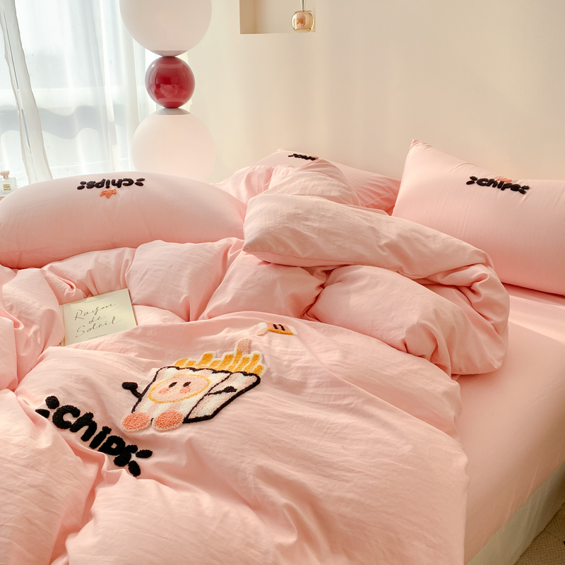 当前位置: 91家纺网 > 商品网购 > 床品套件 > 四件套 > 普通磨毛四件套 > 优迈 2024新款超柔磨毛水洗棉毛巾绣四件套系列-风格二 薯条