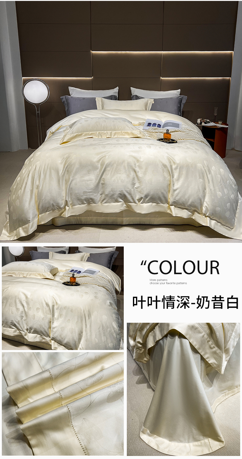 商品名称:淼铭家纺 2025新款打空工艺长绒棉提花四件套 叶叶情深-奶昔白